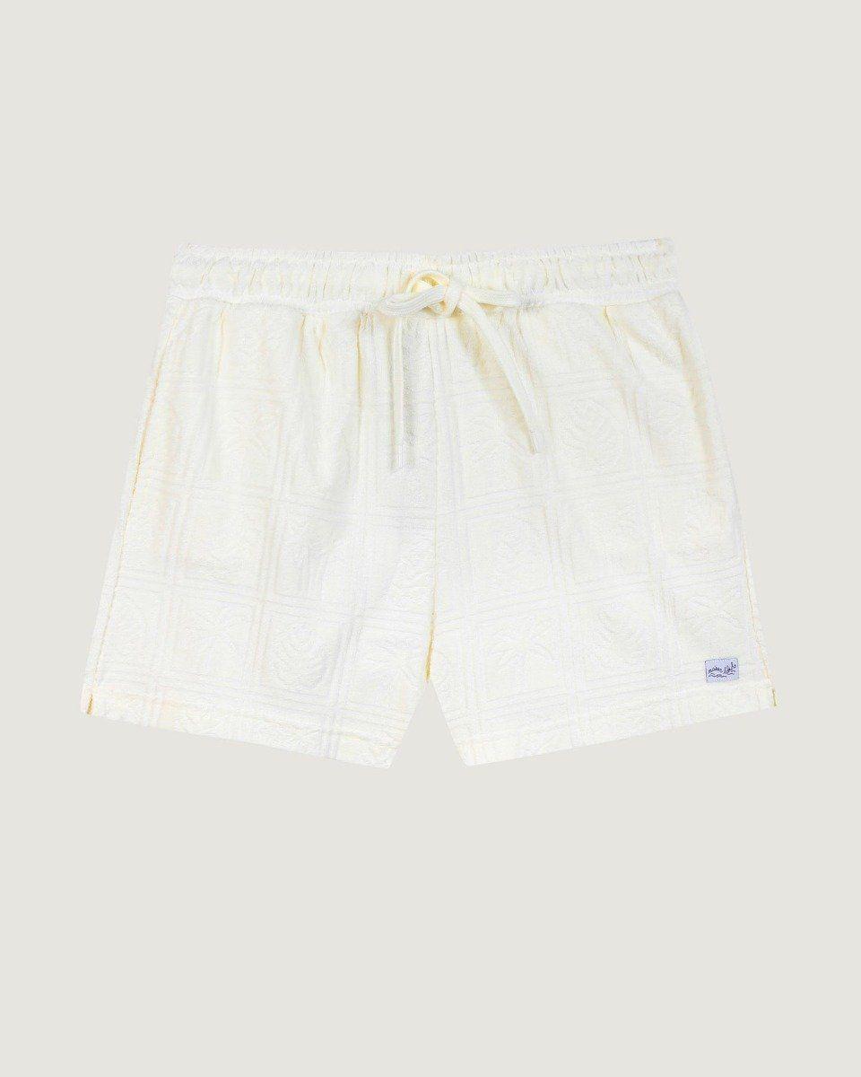 Diese Shorts verfügen über ein durchgehendes Karomuster, das eine unverwechselbare Textur und Optik bietet. Der elastische Bund mit Kordelzug sorgt für eine bequeme und verstellbare Passform und macht sie für verschiedene Freizeitaktivitäten geeignet.