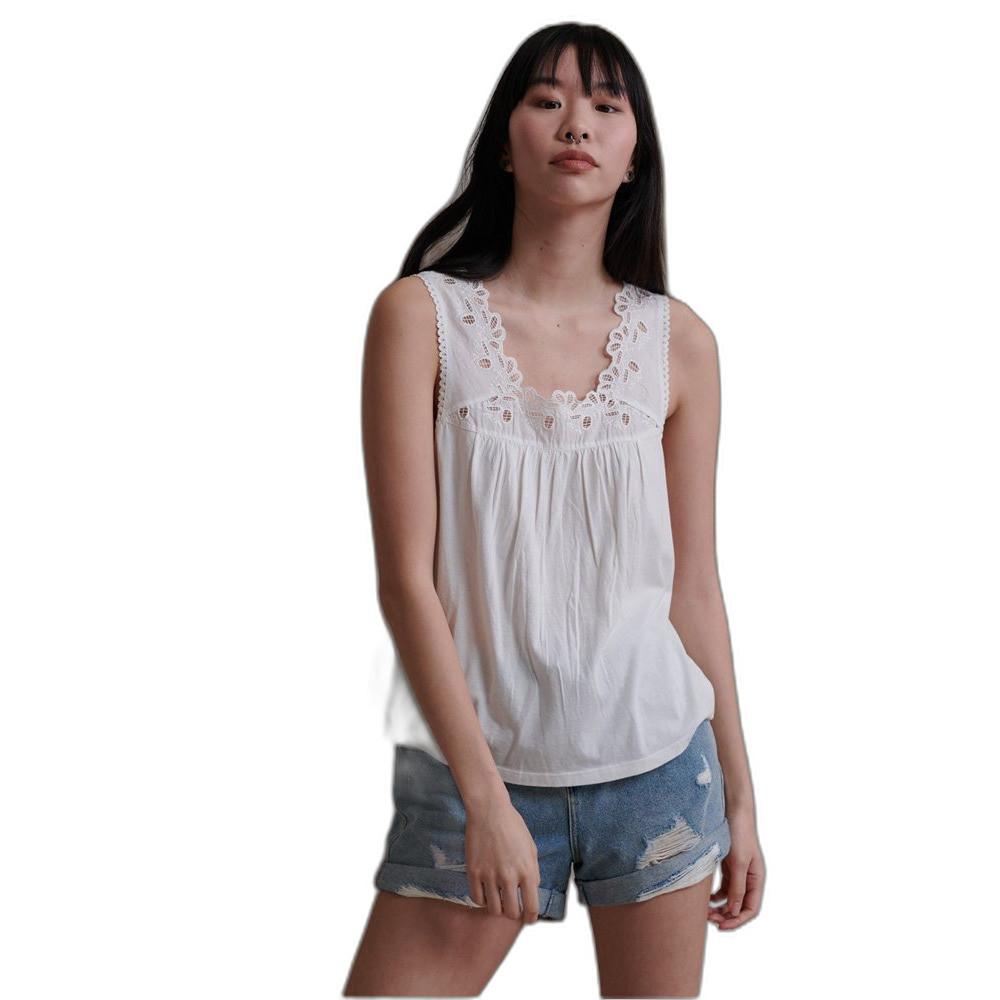 Dieses Damen-Top verfügt über zarte gewebte Zierdetails, die einen charmanten und stilvollen Look bieten. Das Design umfasst einen schmeichelhaften V-Ausschnitt und eine bequeme Passform, was es zu einer vielseitigen Ergänzung für jede Garderobe macht.