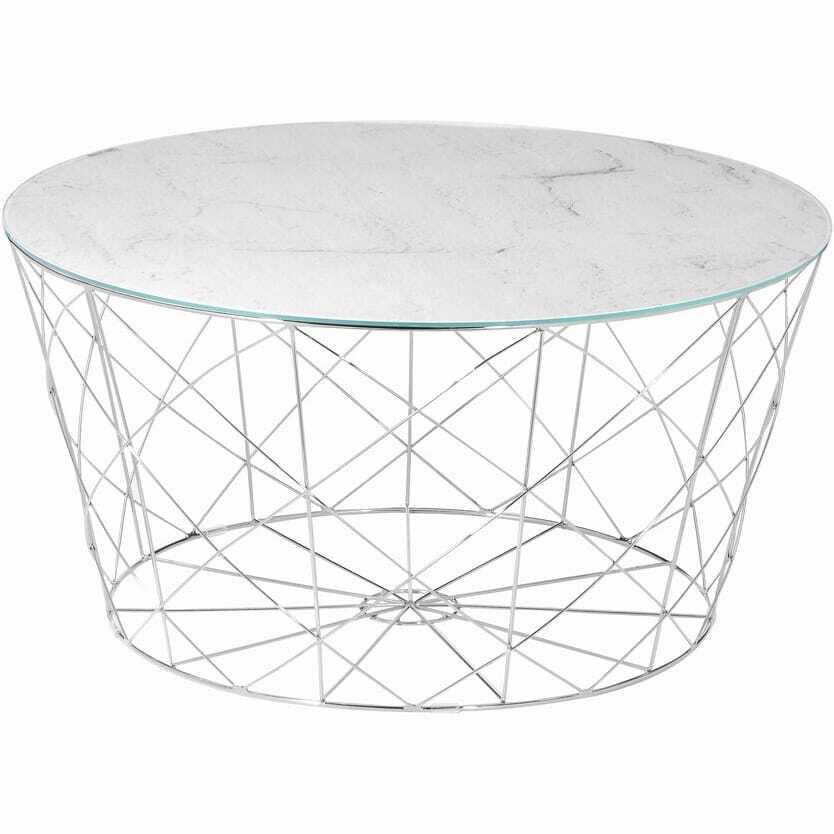 mutoni Couchtisch mit Metallkorb chrom Marmor weiss rund 80x80