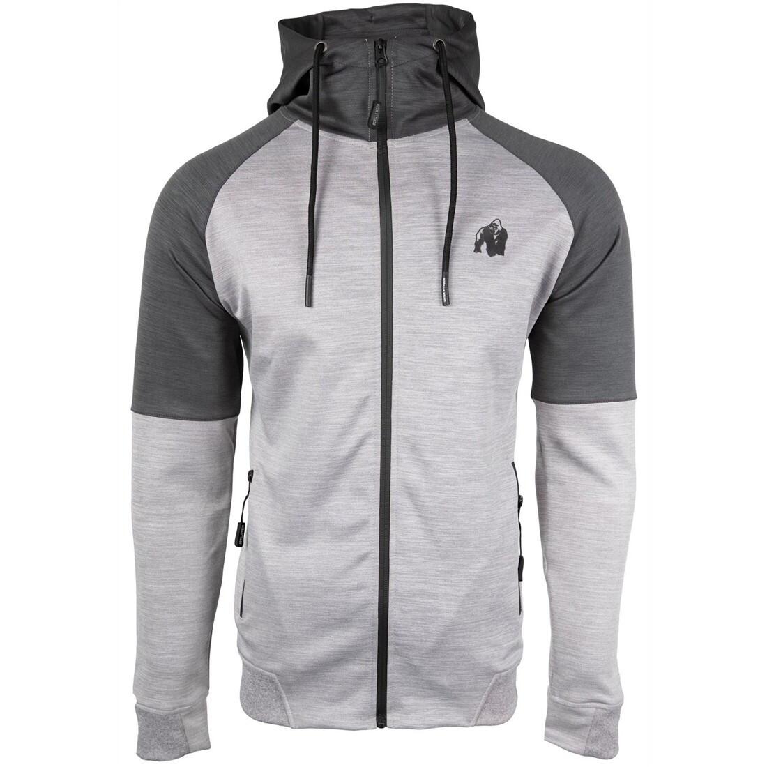 Der beeindruckende Trainingsanzug Sullivan zieht alle Blicke auf sich. Er sieht toll aus und ist aus hochwertigen Stoffen gefertigt. Er hat eine reguläre Passform und die perfekte Mischung aus Polyester und Elastan macht ihn sehr angenehm zu tragen. Dieses Outfit ist außerdem vielseitig: Sie können damit trainieren, sich damit entspannen und es hält Sie warm, wenn Sie draußen sind. Die Trainingsjacke hat eine Kapuze mit Kordelzug, Reißverschlusstaschen und ein Siebdrucklogo Gorilla Wear. Der Trainingsanzug Sullivan ist in Schwarz und Grau erhältlich.