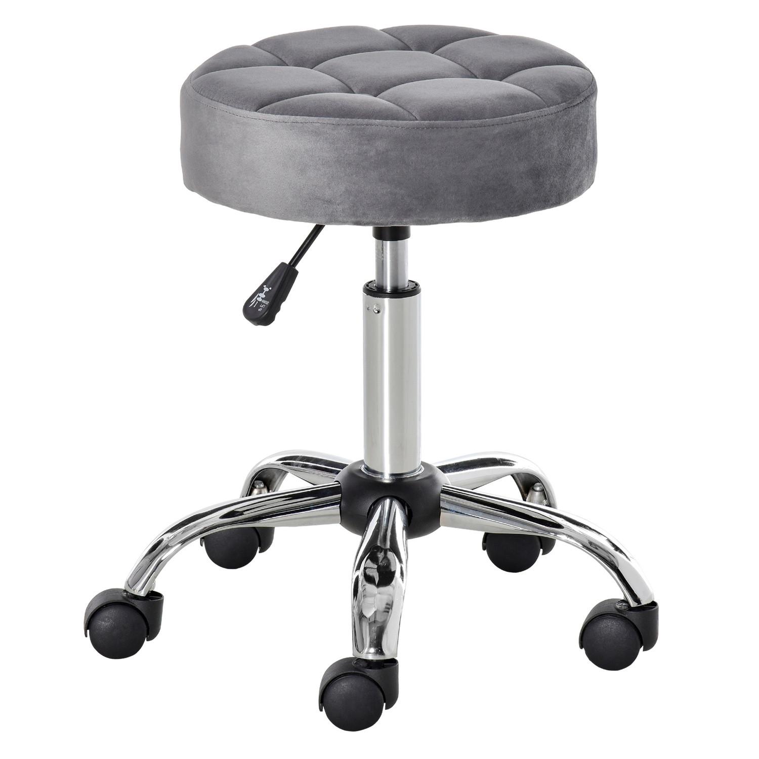 Northio, Salonstuhl mit Rädern Rollhocker höhenverstellbar, drehbar, Samt-Touch, Chrom-Basis, Grau, 35x35x49-61cm