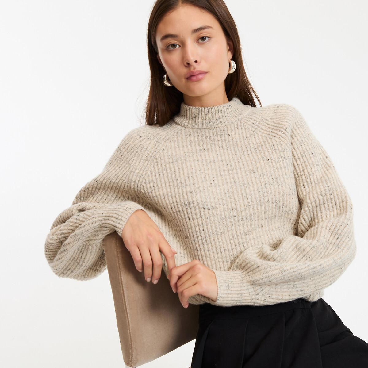 Dieser Oversize-Pullover begeistert mit einem leicht erhöhten Rundhalsausschnitt und gerippten Abschlüssen an den Puffärmeln, am Halsausschnitt und am Saum. Er ist sorgfältig aus einem schönen Wollmischgewebe gefertigt.