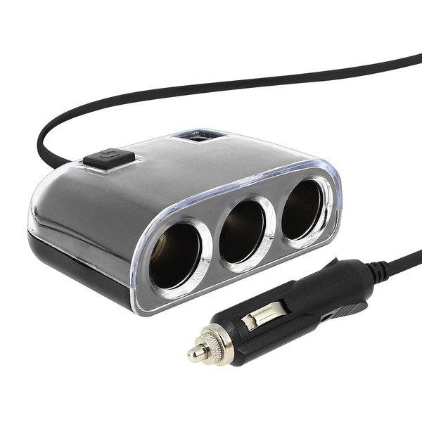 Dreifacher Zigarettenanzünder-Adapter + 2x integrierte USB-Anschlüsse Praktisches Zubehör zum gleichzeitigen Laden mehrerer Geräte Auch kompatibel mit Handys, die über USB geladen werden Kompaktes Format, ideal für einen täglichen Gebrauch