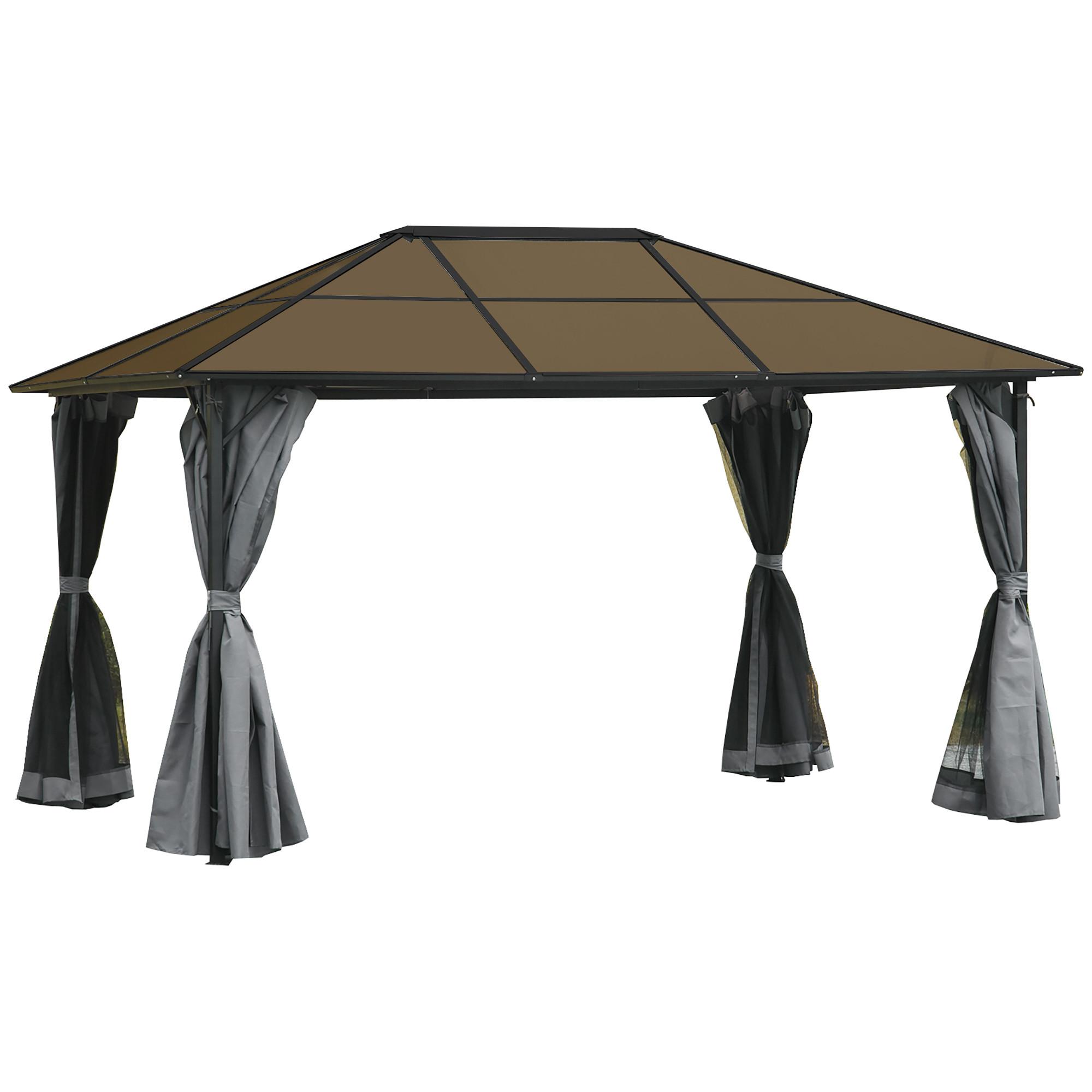 Tauchen Sie ein in puren Outdoor-Luxus mit unserem exklusiven Hardtop-Pavillon von Outsunny. Das lichtdurchlässige Dach aus Polycarbonat schafft eine wohlige, einladende Atmosphäre zum Entspannen. Gleichzeitig bietet der Pavillon mit seinen doppellagigen Vorhängen einen zuverlässigen Schutz vor widrigen Witterungsbedingungen und lästigen Insekten. Dank der Verwendung von robusten und wetterbeständigen Materialien, ist dieser Pavillon ein Meisterwerk der Langlebigkeit und Zuverlässigkeit.