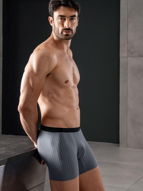 Diese Boxershorts bieten eine bequeme Passform und ein modernes Design. Der Stoff weist ein dezentes Streifenmuster auf, das einem alltäglichen Essential einen Hauch von Stil verleiht. Ein elastischer Bund sorgt für einen sicheren und bequemen Sitz.