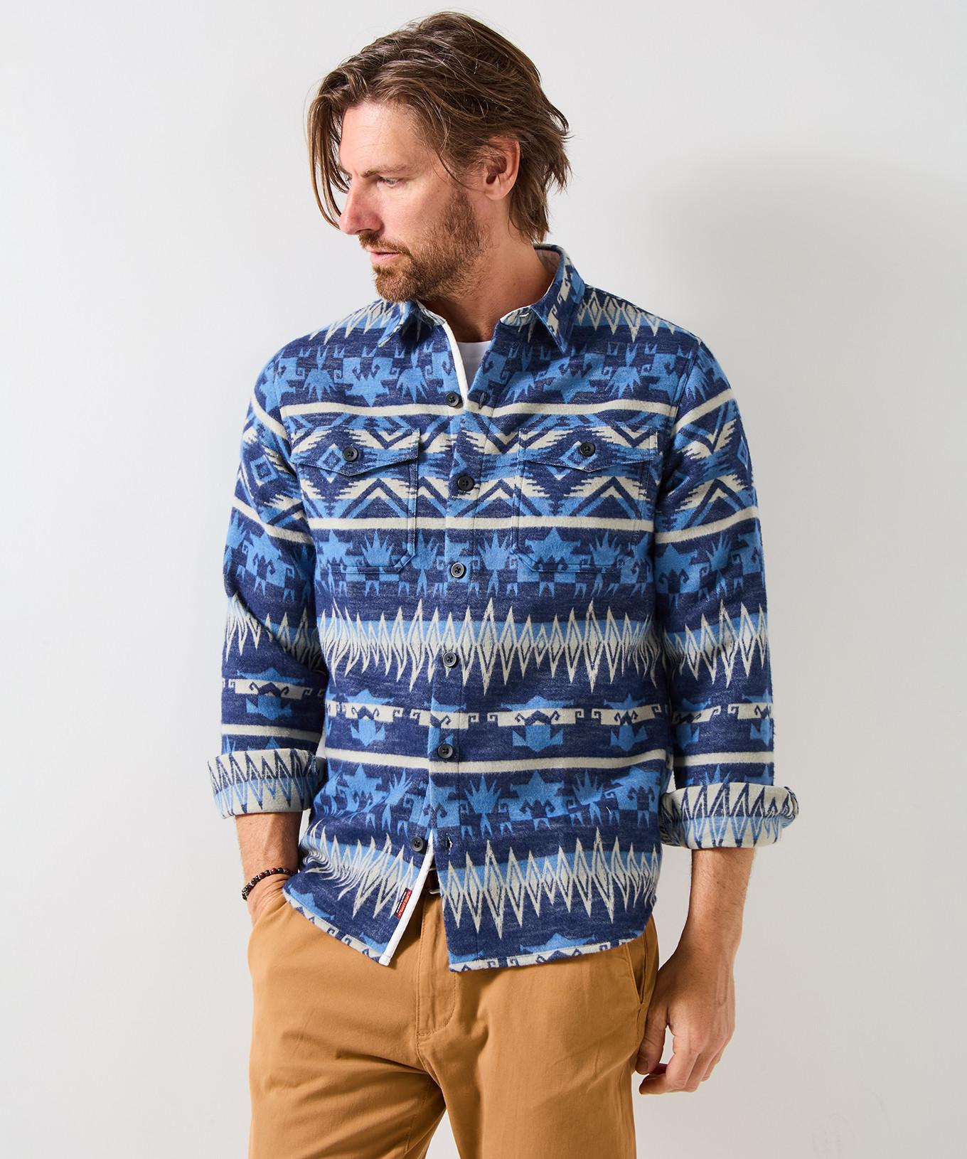 Dieses klassische Hemd mit auffälligem Aztekenmuster bietet einen unverwechselbaren und stilvollen Look. Es ist mit einer durchgehenden Knopfleiste und einem traditionellen Kragen ausgestattet, was es zu einer vielseitigen Ergänzung für jede Garderobe macht.
