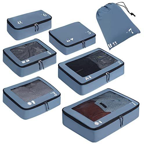 Only-bags.store Kofferorganisator Packwürfel 7-teiliges Set Packwürfel Haustier Recycelte Packsäcke für Kofferorganisator für Rucksack Schuhsack Kleidersäcke (blau)