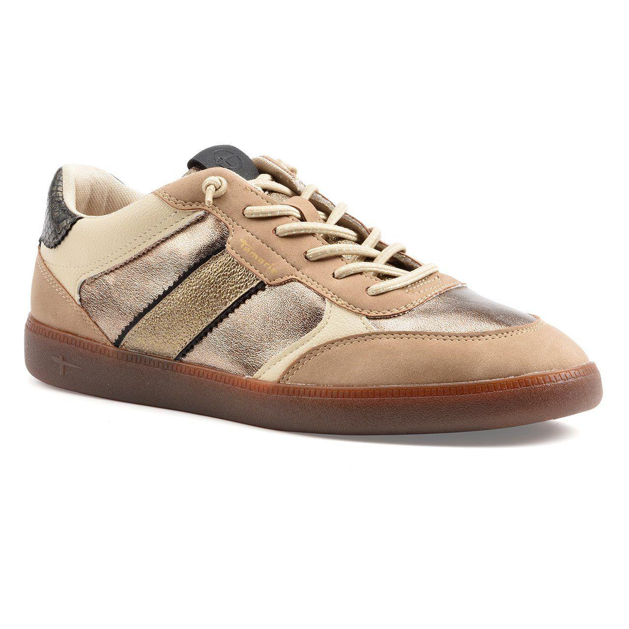 Die TATI Sneakers sind die perfekte Wahl für Frauen, die Eleganz und Komfort vereinen möchten. Diese Sportschuhe sind für den täglichen Gebrauch konzipiert, sei es zum Wandern, für die Freizeit oder für Ausflüge. Ihr Low-Top-Design mit beigen Synthetik-Paneelen und metallischen Bronze-Akzenten ist sowohl stilvoll als auch funktional.
