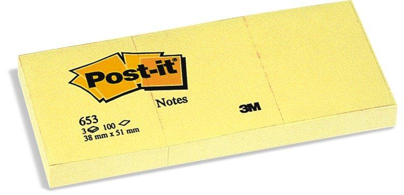 Post it POST-IT Block 38x51mm 653Y gelb/100 Blatt 3 Stück