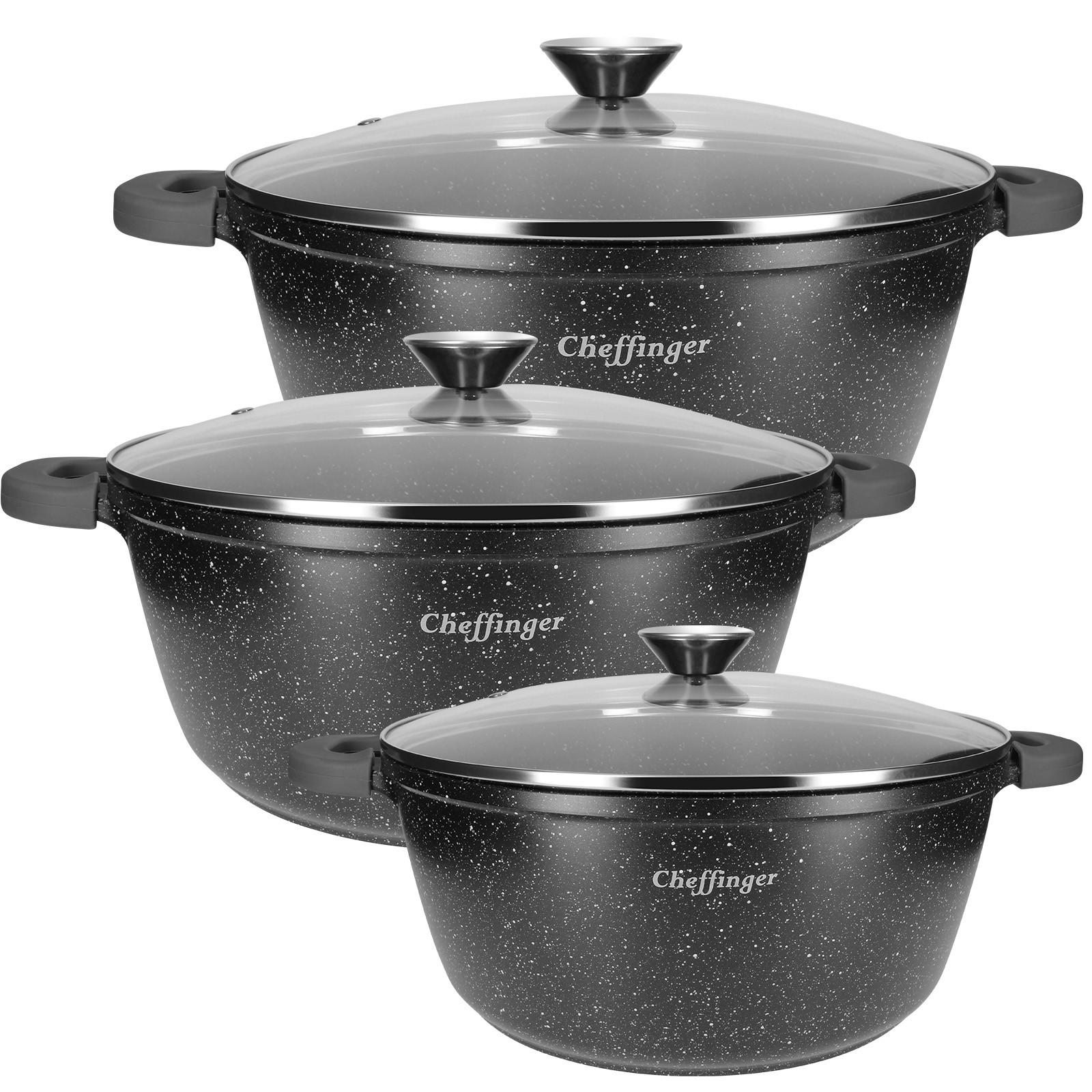 Cheffinger 3er-Set: Kochtöpfe mit Marmor-Effekt
