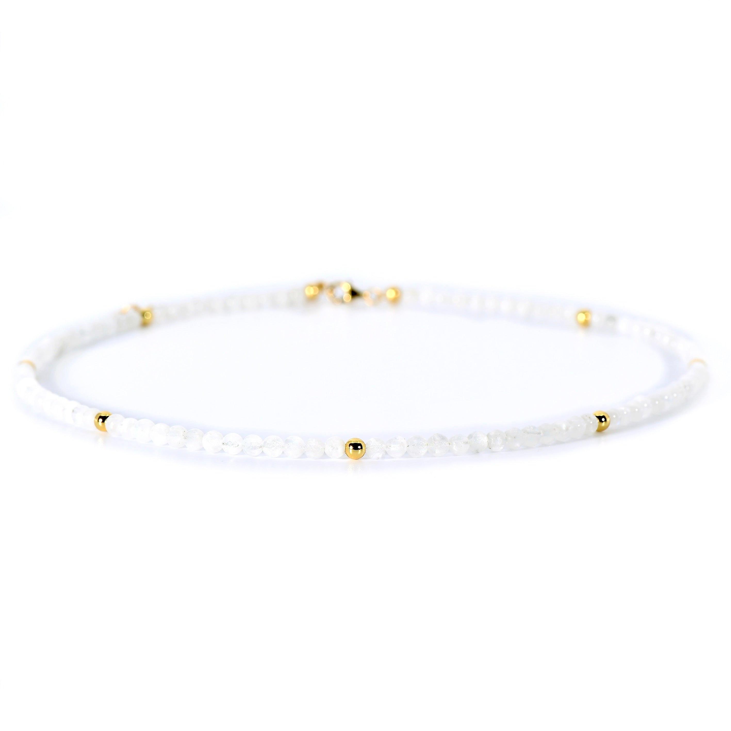 Damen Halskette mit Regenbogen-Mondsteinen und vergoldetem Silber