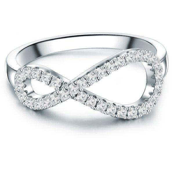 Sie suchen einen Verlobungsring mit Symbolkraft und viel Glamour? Dann hat dieses Modell der Manufaktur Trilani Ihr Ja-Wort verdient! Die in Form eines Infinity-Symbols geschwungene Ringschiene ist mit funkelndem Zirkonia verziert. Der präzise Brillantschliff der Kristalle entfacht in unzähligen Facetten ein unvergleichliches Feuer am Ringfinger. Ringschiene und Fassungen aus 925er Sterlingsilber sind durch eine Rhodium-Veredelung vor dem Anlaufen geschützt. Eine stilvolle und günstige Alternative zu teuren Diamantringen - und ein bezaubernder Brautschmuck mit dem Zeug zum Every-Day-Piece.