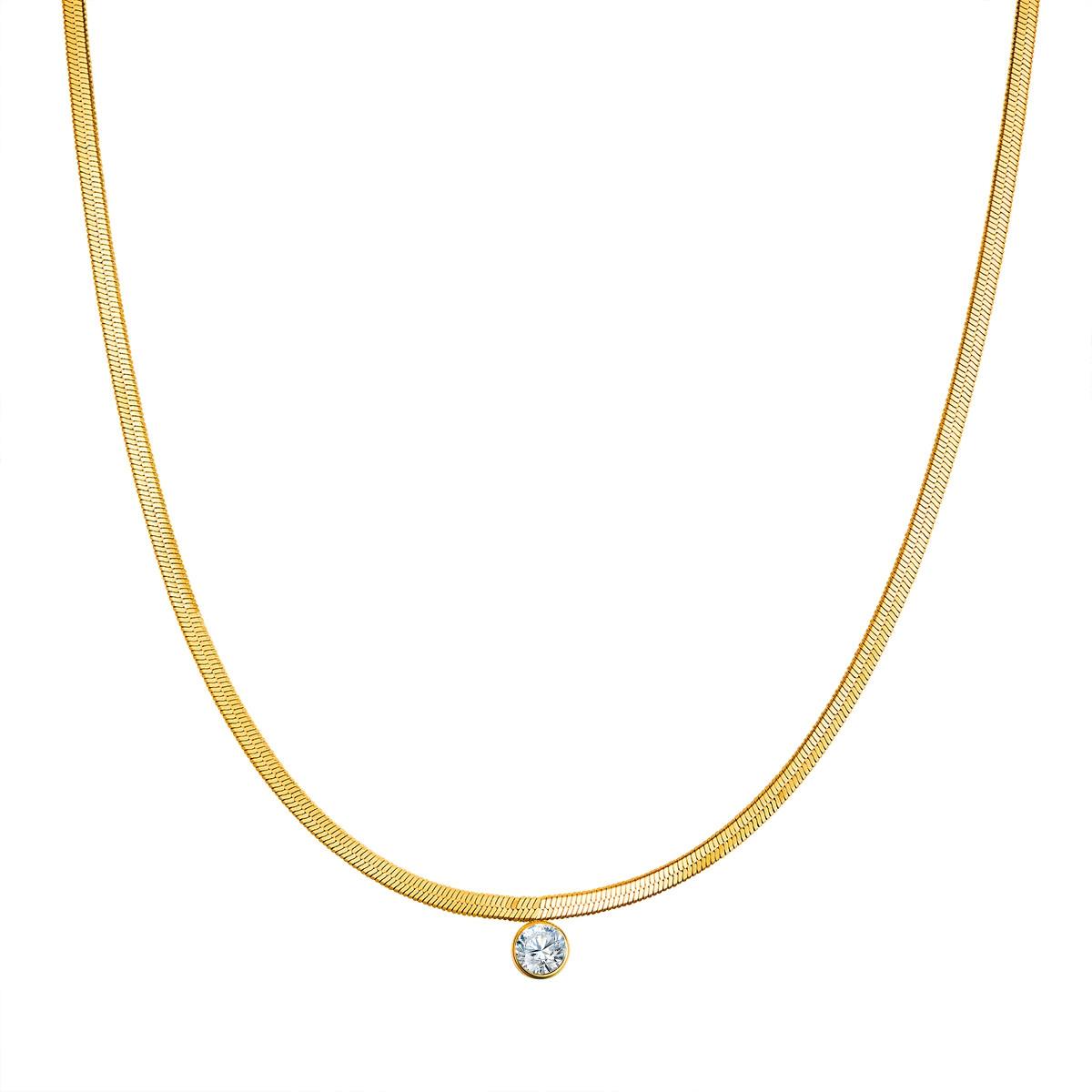 Sie sind auf der Suche nach einem exklusiven Schmuck-Klassiker? Schlangenketten wie dieses Modell des Labels Eastside gehören in jedes Schmuckkästchen! Die besondere Machart der Gliederkette ist dank vertikal gereihter Glieder besonders flexibel und anschmiegsam und begeistert mit ihrer massiven und doch eleganten Optik. Akzente im Dekolleté setzt der Glitzeranhänger aus facettiertem Zirkonia. Die Kette ist aus gelbvergoldetem Edelstahl gefertigt und ein Verlängerungsstück mit Karabinerverschluss sorgt für eine unkomplizierte Längenanpassung. Inspiriert vom Lebensgefühl des angesagten Stadtquartiers Eastside in New York entsteht so ein außergewöhnliches Accessoire.
