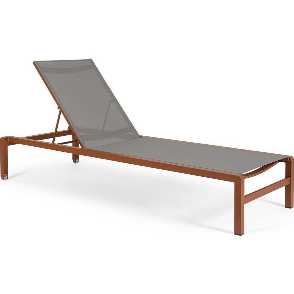 Liegestuhl aus Stoff und Aluminium, Farbe Grau & Braun, 78 x 195 x 90 cmGestell aus Aluminiummit Polyester PulverbeschichtungSitzfläche und Rückenlehne aus TextileneRollen aus Kunststoff und Schrauben aus rostfreiem Stahl (6 Positionen)Stapelbar