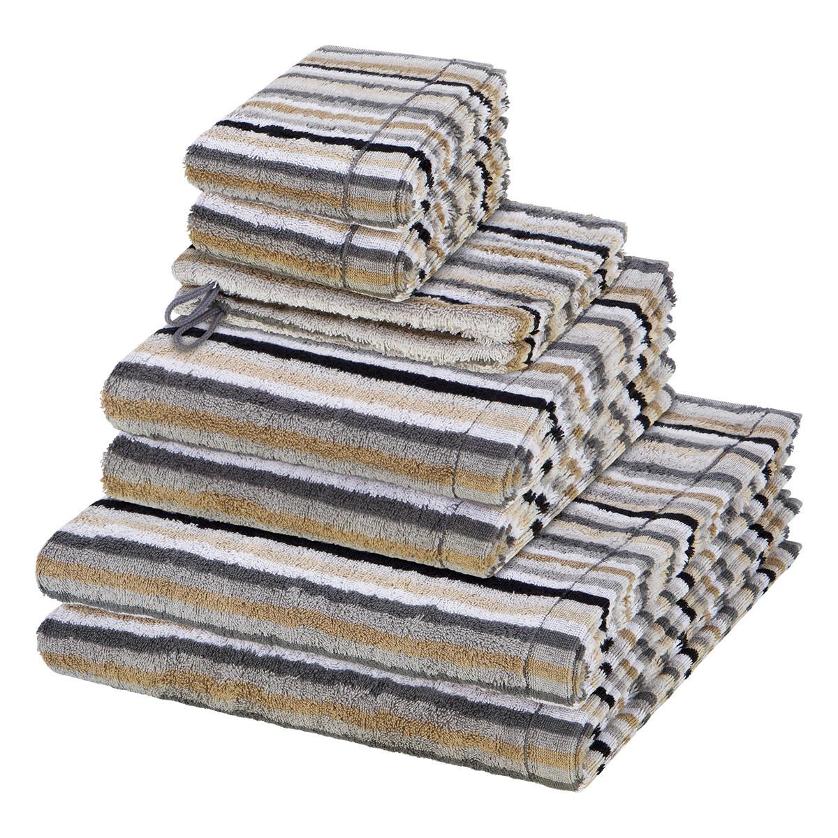 Die Handtücher der Serie Lifestyle überzeugen mit ihrer hochwertigen, flauschigen Qualität und bringen mit ihrem frischem Streifen-Design moderne, farbenfrohe Akzente in Ihr Badezimmer. Hergestellt aus reiner Baumwolle, sind sie nicht nur angenehm weich, sondern auch pflegeleicht und trocknergeeignet. Diese Handtücher vereinen Stil und Komfort, ideal für ein harmonisches und modernes Ambiente. Set besteht aus: 2 X Handtuch (50 X 100cm), 2 X Duschtuch (70 X 140cm), 2 X Gästetuch (30 X 50cm), 2 X Waschhandschuh (16 X 22cm)