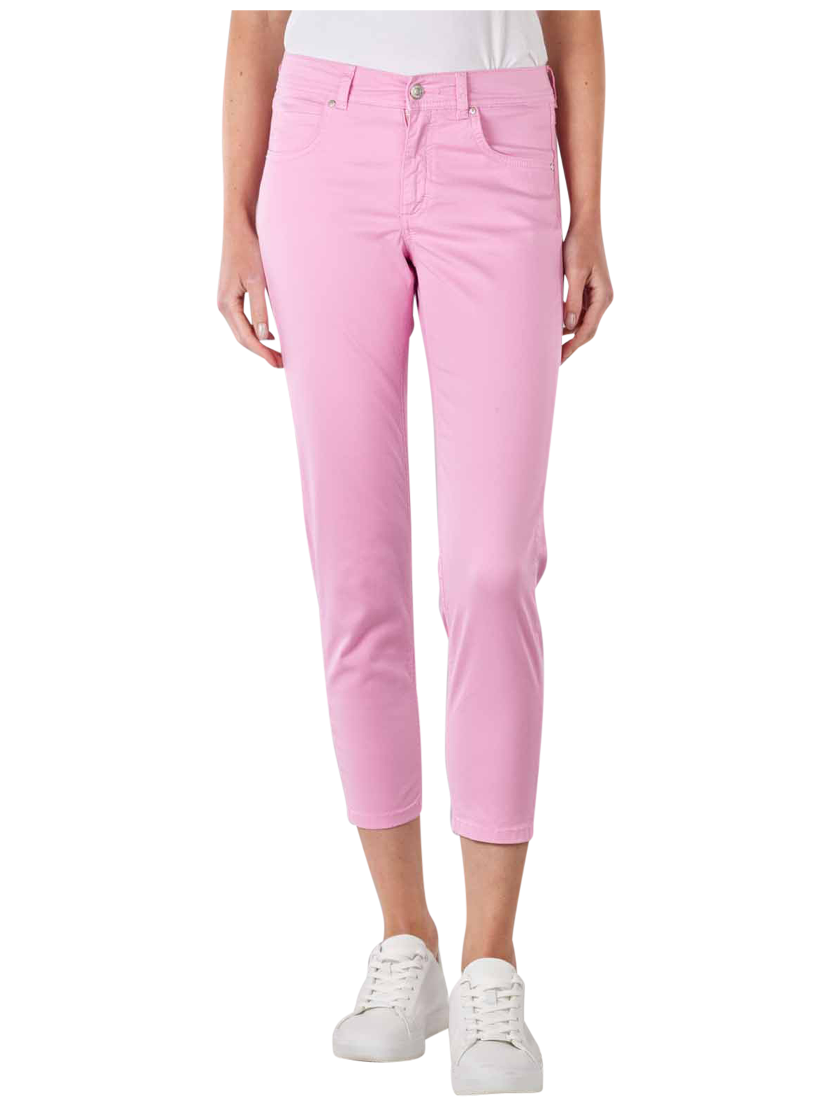 Die Angels Cotton Sportiv Ornella Pant Slim Fit Damenjeans in der Farbe Raspberry Ice Cream besticht auf Anhieb mit einer sommerlichen Farbe und einer engen Passform, die die weibliche Silhouette optimal zur Geltung bringt. Dank mittelhohem Bund und dünnem Material mit Stretch-Anteil bietet die 7/8-Jeans trotz eng geschnittenen Beinen einen komfortablen Sitz und viel Bewegungsfreiheit.