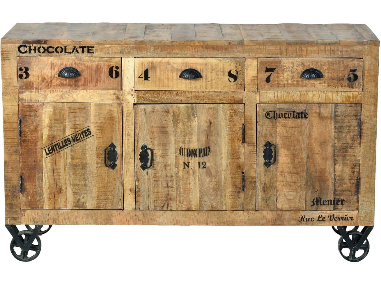 Möbel aus Mangoholz haben eine langjährige Tradition in Indien. Schliesslich ist das eine Kulturpflanze mit jährlich etwa 15 Mio T (!!!) Ertrag an Früchten allein in Indien. Aufgrund der hohen Dichte ist dieses Holz ähnlich gut für den Möbelbau geeignet wie Buche, Eiche oder Teak. In der Serie ?Vintage Natural Wood? verwenden Schreiner aus der Provinz Rajasthan eben dieses Holz, um eine urwüchsige Serie mit antikem Touch zu schaffen. Das Thema ?factory design? fliesst hier mit ein, denn die handgeschmiedeten Beschläge und Rollen gelten als Reminiszens an die Zeit der industriellen Revolution.