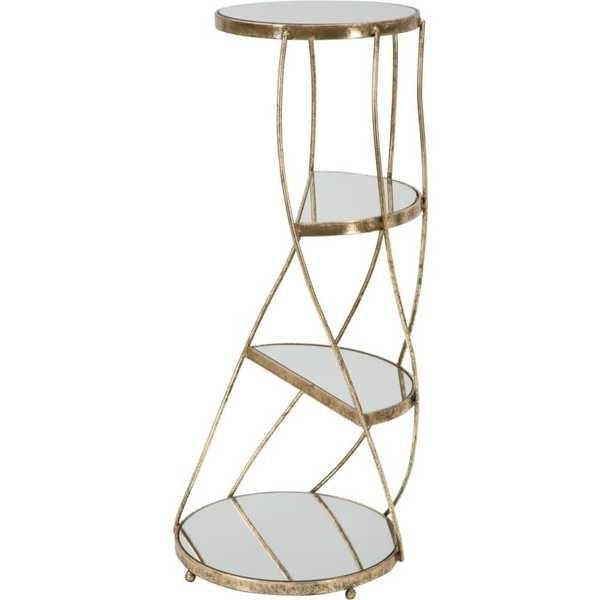 Telefonhaltertisch aus Metall und Glas mit 2 Ablagen. Gold kombiniert mit Glas erzeugt eine starke Wirkung. Die gewundenen und flüssigen Formen erinnern an den Surrealismus von Salvador Dal. Ein luxuriöses und glamouröses Element für Ihr Zuhause.