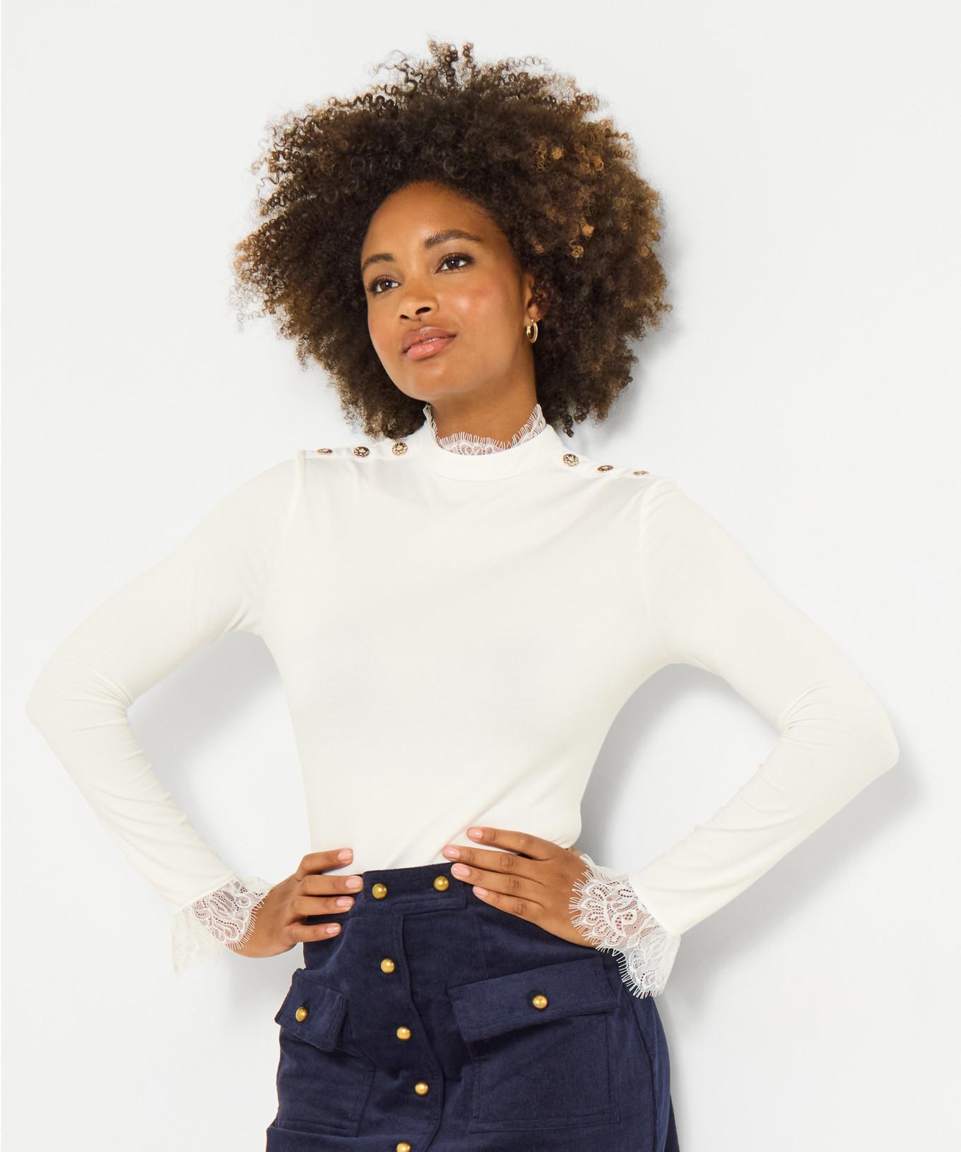 Joe Browns, Jersey Top Hoher Kragen Spitzenbesatz