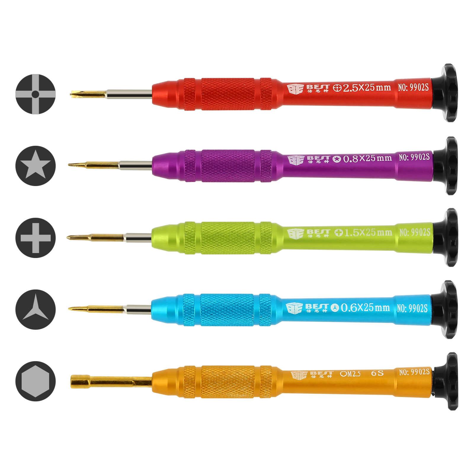 Universal Werkzeug-Set um Ihr Apple iPhone zu reparieren. Mit einem Triwing- und Kreuzschraubendreher + Pentalobe Schraubendreher + Sechskant-schraubendreher + 2 Plastiköffnern + 1 Plektrum-Öffnungswerkzeugen.