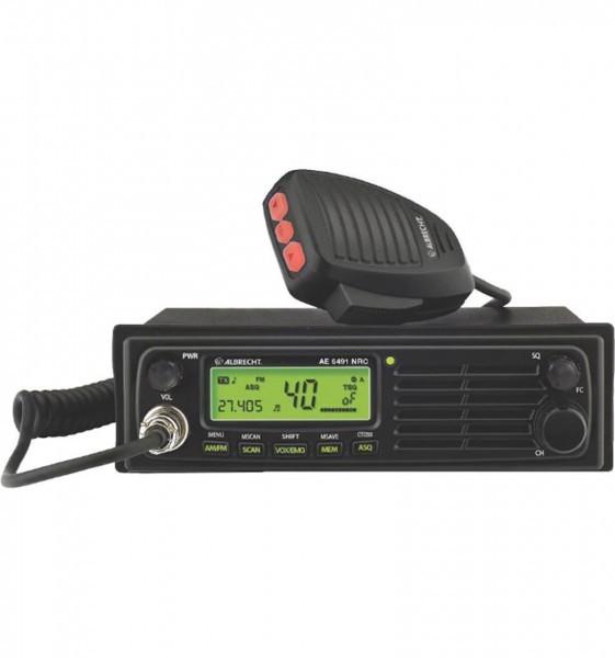 Die VOX Freisprechfunktion ermöglicht die Kommunikation im Fahrzeug, ohne das Mikrofon in die Hand nehmen zu müssen. Das Funkgerät erkennt, wenn der Fahrer spricht und startet automatisch die Funkübertragung. Die Empfindlichkeit und Verzögerung der VOX Freisprechfunktion kann in mehreren Stufen eingestellt werden. Somit kann das CB-Funkgerät bedenkenlos gemäss der Strassenverkehrsordnung § 23 (1a) StVO in Fahrzeugen verwendet werden. Das Multinorm CB-Funkgerät zeichnet sich durch einen sehr einfachen Einbau aus und darf europaweit verwendet werden: Das hochwertige Gerät bietet 40 AM sowie 40 (80) FM Kanäle und entspricht allen europäischen Funk-Standards. Darüber hinaus kann das Funkgerät sowohl an 12 Volt als auch direkt an 24 Volt angeschlossen werden, ein 24V/12V-Spannungswandler erübrigt sich somit. Auch die Montage ist denkbar einfach: Durch die geringe Einbautiefe des Albrecht AE 6491 NRC sowie durch den im Lieferumfang enthaltenen DIN-Einbaurahmen eignet sich das Gerät optimal für den Einbau in LKW oder PKW. Für einen kräftigen und klaren Sound sorgt der leistungsstarke 3-Watt-Frontlautsprecher, der einen Zusatzlautsprecher überflüssig macht. Einen besonderen Komfort bietet das Albrecht AE 6491 NRC durch die intuitive Bedienung. Das Display dieses Multinorm CB-Funkgerätes überzeugt durch Übersichtlichkeit sowie einen grossen horizontalen und vertikalen Betrachtungswinkel. Die Display-Beleuchtung kann, je nach Belieben, zwischen den Farben Grün und Rot umgeschaltet werden. Am Mikrofon befinden sich zusätzliche Up-, Down- und ASQ-Tasten. Die CTCSS Funktion des Albrecht AE 6491 NRC kann das Hören fremden Funkverkehrs unterdrücken.