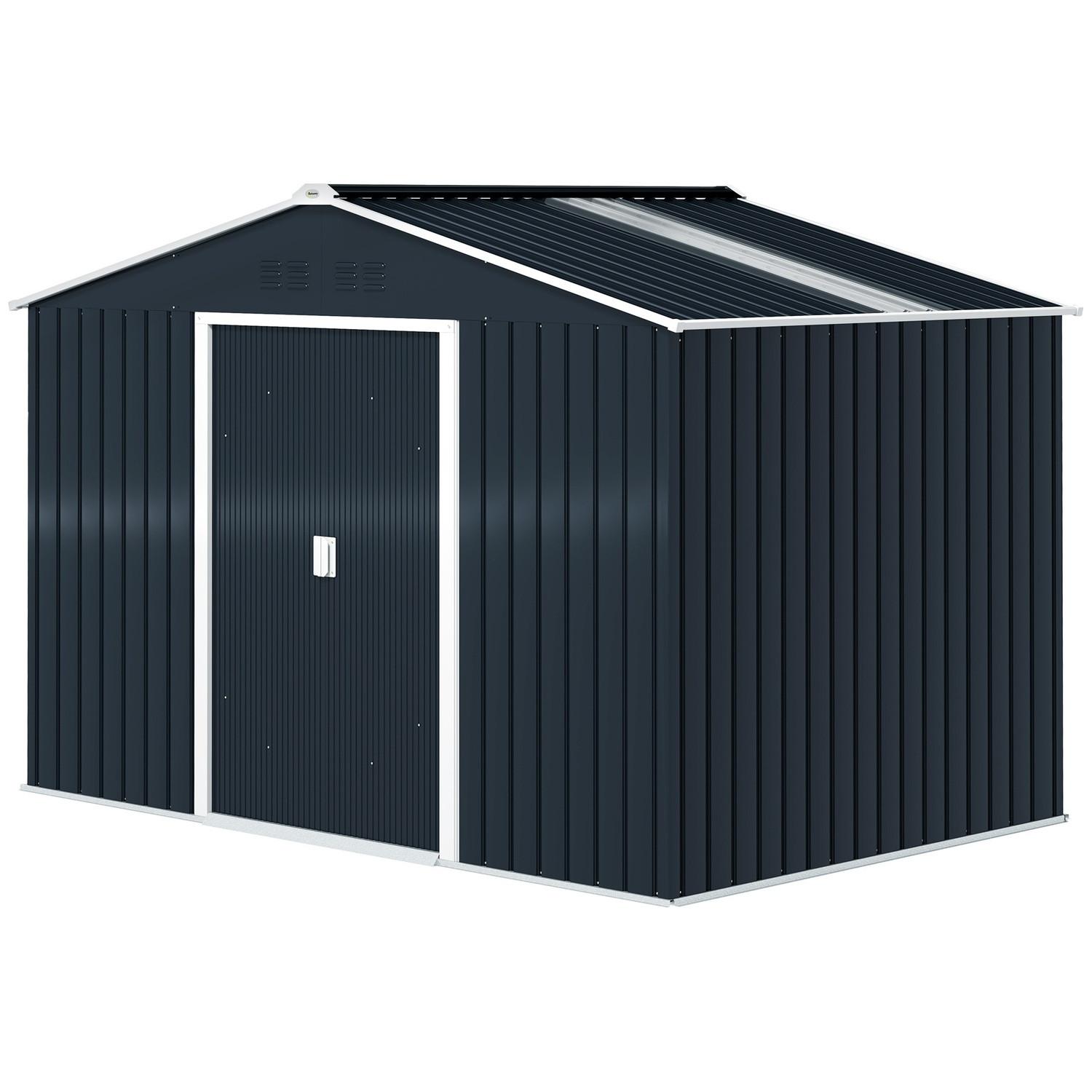 Northio Verzinkter Stahl Gerätehaus 4,9m² 277x195x192cm Geräteschuppen mit Satteldach, Fundament, Abschließbarer Schiebetür, wetterfest Gartenhaus, Outdoor Garten Schuppen für Hinterhof Dunkelgrau Aosom