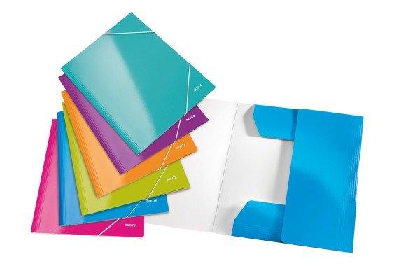 WOW - Gummibandmappe Hochwertige Eckspannermappe aus PP in brillanten WOW Farben. Ideal für die tägliche Ablage von Dokumenten und losen Unterlagen. Starker Karton mit laminierter Oberfläche sorgt für Langlebigkeit Mit 3 seitlichen Schutzklappen für die sichere Aufbewahrung der Unterlagen Elastische Gummizüge über den Vorderdeckel für den sicheren Transport der Dokumente Ideal für A4 Unterlagen, Leitz Sichthüllen und Leitz CombiFile Hüllen Speziell gefalzte Klappen für die individuelle Einstellung auf die Inhaltsmenge Für bis zu 150 Blatt (80 g/m²) Säurefrei und dokumentenecht