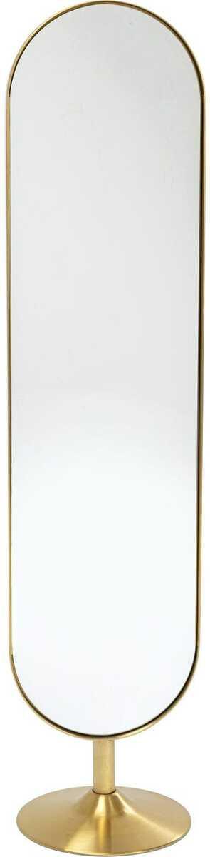 Die Spiegel aus der Serie Curve kombinieren Glamour mit zeitlosem Design und überleben so jeden kurzfristigen Trend. Dank des Tulpenfusses kann dieses Curve Modell überall aufgestellt werden - Löcher bohren und ähnlicher Aufwand entfällt. Die Spiegel der Serie Curve gibt es in vielen Formen und Farben.Ovaler, grosser Standspiegel mit edlem, Messing beschichtetem rundem Fuss und RahmenZum Outfit-Check im Schlafzimmer genau richtig - passt dank der schlanken Form auch in die Ecke neben dem KleiderschrankSchwer genug um Standfähigkeit zu beweisen, leicht genug, um auch mal den Platz in der Wohnung zu wechselnSo wird eine Flur-Garderobe daraus: Einfach mit einer Wandgarderobenleiste und einem samtigen Sitzhocker kombinieren - fertigBestellen, auspacken und aufstellen - dieser grosse Spiegel kommt bereits montiert. Praktisch!Produktinformation Glas: Glas verspiegelt, Rahmen: Stahl messing beschichtet, handgearbeitet, Lieferung teilzerlegt