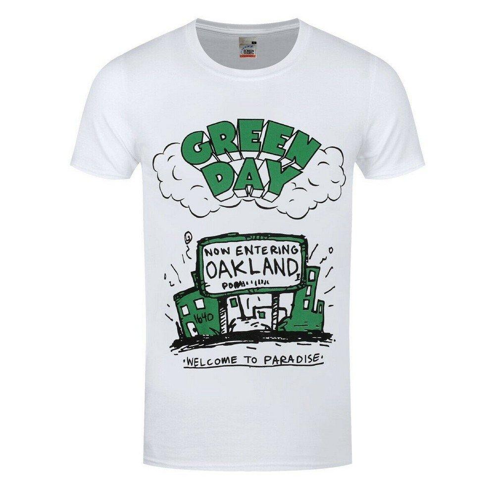 Dieses T-Shirt zeigt einen Grafikdruck, der vom ikonischen Song "Welcome To Paradise" der Band inspiriert ist. Das Design umfasst das Bandlogo, ein "Now Entering Oakland"-Schild und den Schriftzug "Welcome To Paradise". Es ist eine bequeme und stilvolle Wahl für Fans der Band.