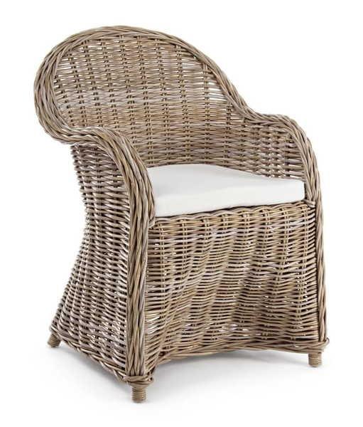 Sessel mit Rattangestell aus Kabugeflecht. Abziehbares Kissen mit Baumwollstoff. Es empfehlt sich, das Möbelstück nicht im direkem Sonnenlicht und Unwetter auszusetzen.