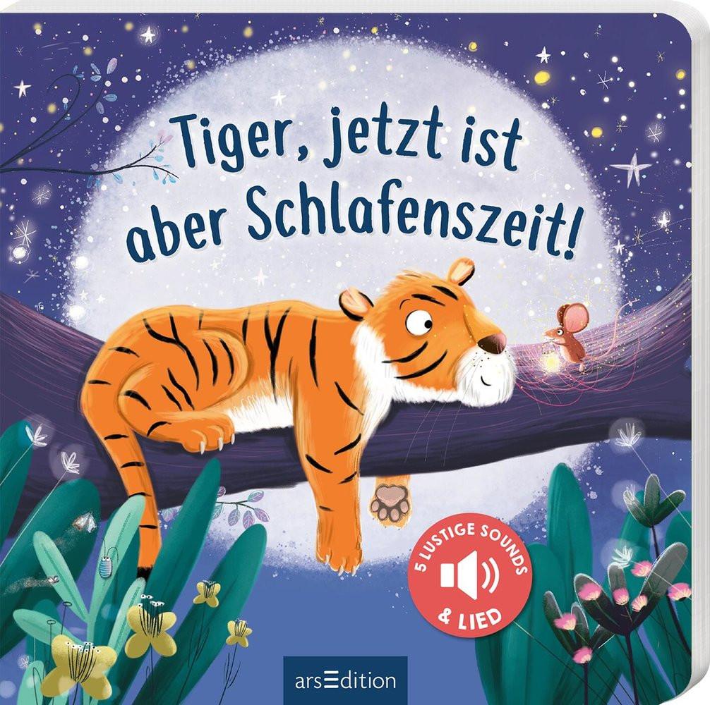Auch kleine Tiger müssen schlafen gehen!Die Sterne funkeln hell am Himmel. Für Tiger und Maus ist es Zeit, schlafen zu gehen. Nur blöd für die kleine Maus, dass sich ihr Bettchen direkt unter Tigers Ast befindet. Der muss nämlich noch schnell ein Lied trällern, sich in seine Lieblingsschlafposition bringen, Pipi machen und einen Keks essen. Doch dann fallen auch ihm die Äuglein zu. Endlich!, denkt sich die Maus und macht es sich in ihrem Bettchen gemütlich. Außer dem gleichmäßigen Schnarchen des Tigers ist jetzt Ruhe im Dschungel. Hier ist das nämlich jeden Abend so.Mein lustiges Gutenachtbuch mit SoundDieses kunterbunte Pappbilderbuch dreht sich um Tiger und Maus, die ihr ganz eigenes Einschlafritual haben. Die perfekte Kombination aus witziger Tiergeschichte, tollen Sounds und einem beruhigenden Gutenachtlied. Beim Drücken auf die Tiere werden fünf Geräusche ausgelöst. Den Abschluss bildet ein Gutenachtlied zum Anhören, Mitsingen und Träumen. So wird das Zubettgehen für jedes Kind zu einem absoluten Highlight! Das liebevoll gestaltete Soundbuch eignet sich für Kleinkinder ab 18 Monaten.- Liebevolles Abendritual schaffen: lustig gereimte Gutenachtgeschichte- So macht Schlafengehen Spaß: Spielerisches Soundbuch für Kinder ab 18 Monaten- Mit Soundeffekt: 6 extraleicht auslösbare Sounds für kleine Kinderhände- Ton abschaltbar: Mit praktischem An- und Ausschalter auf der Buchrückseite- Batterien auswechselbar: Das Buch enthält handelsübliche Knopfzellenbatterien vom Typ LR 1130 mit je 1,5 V, die sich problemlos auswechseln lassen- Geprüfte Qualität: Das Buch unterliegt strengen Sicherheitsanforderungen und regelmäßigen Qualitätskontrollen nach europäischer Spielzeugsicherheitsrichtlinie