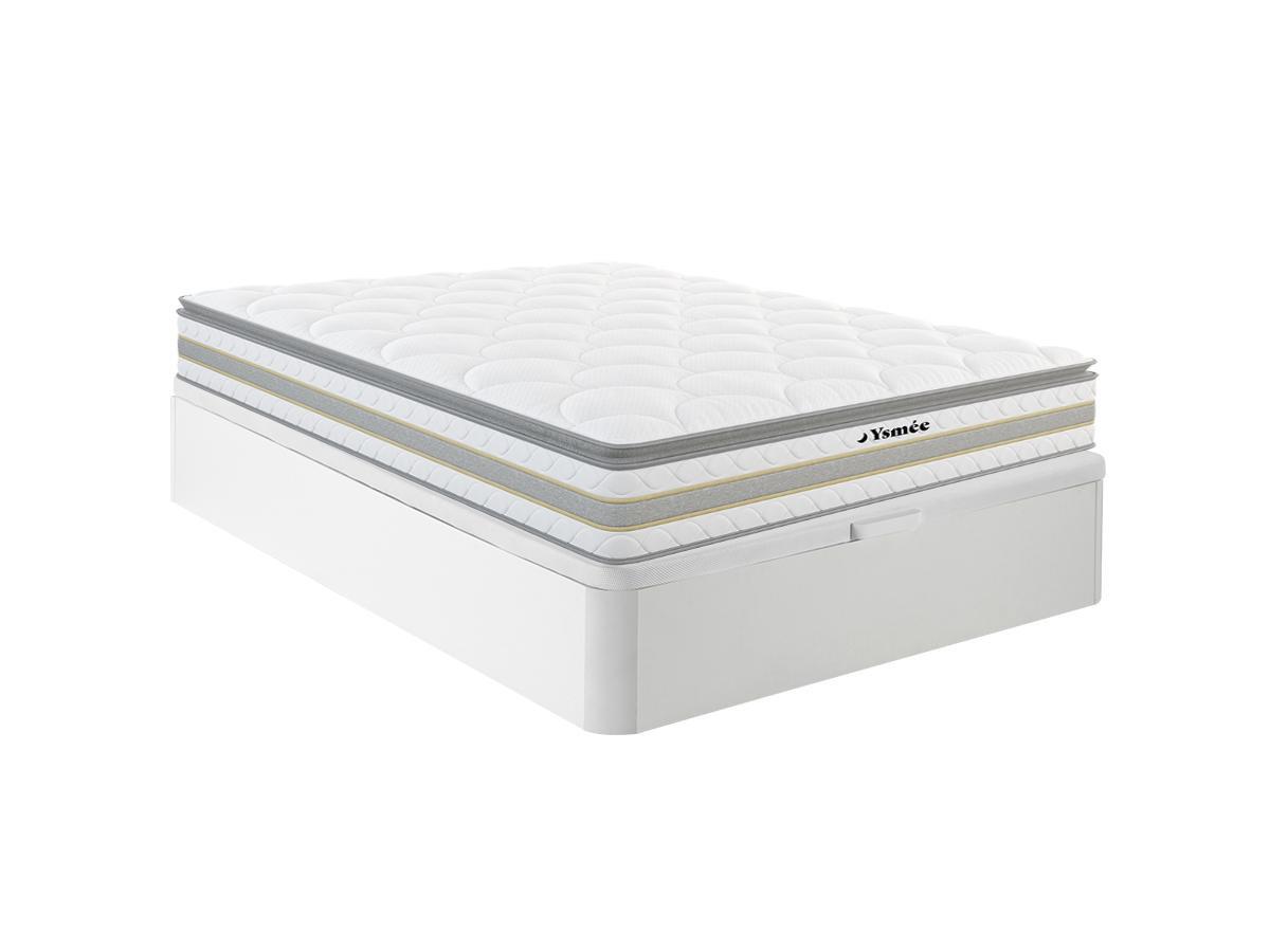 DREAMEA, Set aus Bettgestell mit Bettkasten + Taschenfederkernmatratze & Topper - 160 x 200 cm - Stärke 29 cm - Weiß - CANTERBURY von YSMÉE