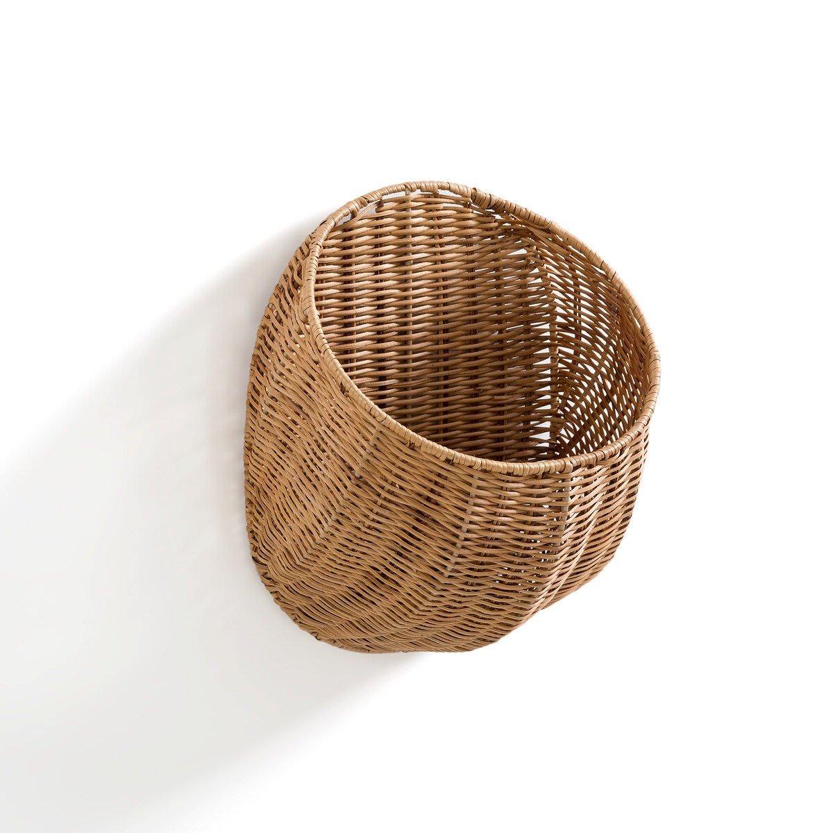 Der Rattankorb wird in kindgerechter Höhe aufgehängt und nimmt Spielzeug, Mützen oder kleine Schätze auf.