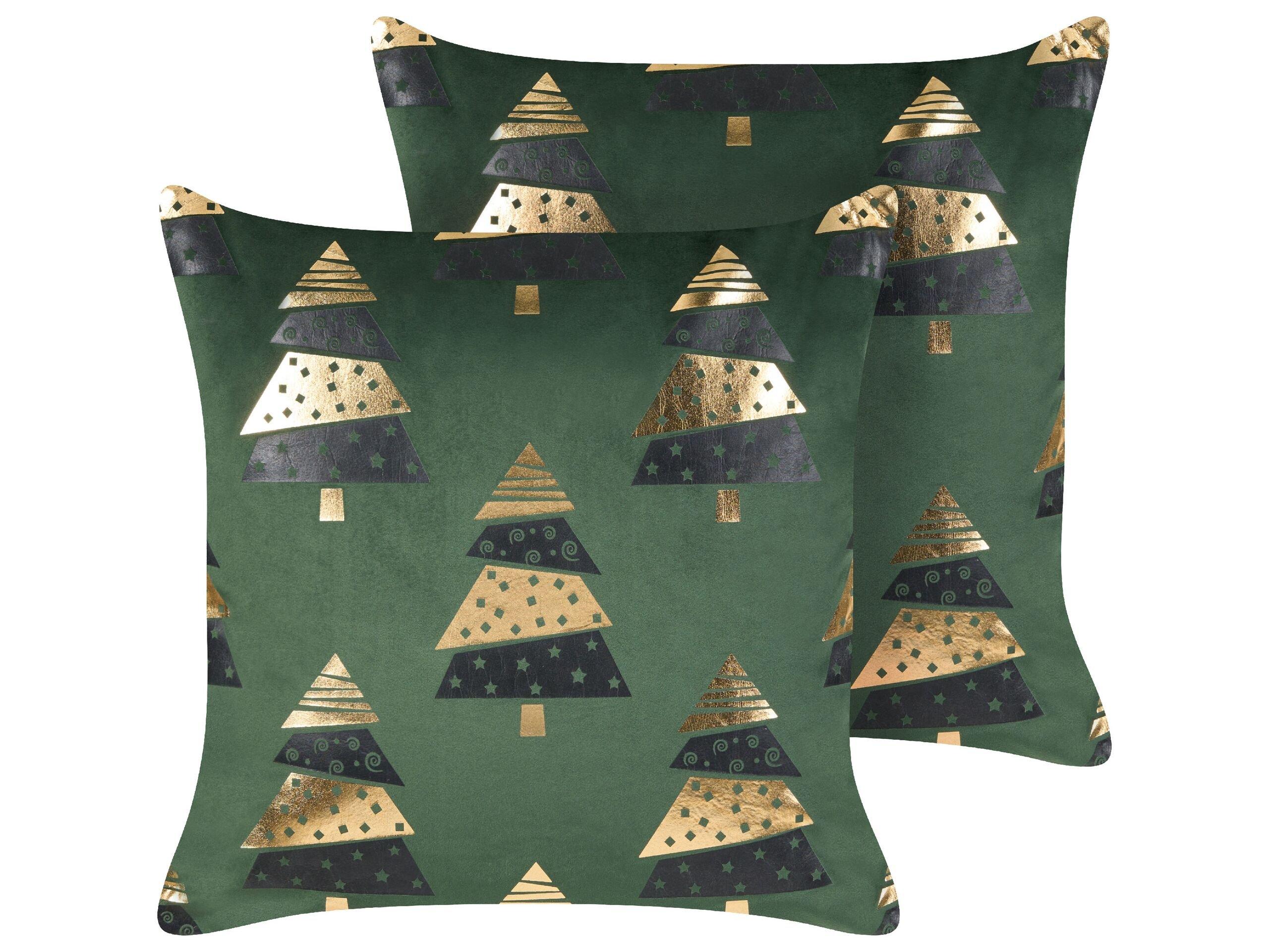 Beliani, Dekokissen 2er Set aus Samtstoff GOLDSPRUCE