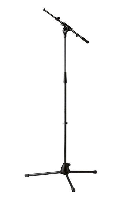 Preisgünstiges Mikrofonstativ mit ausziehbarem Schwenkarm und Kunststoffsockel. Die 3 Metallfüße sind für einen bequemen Transport umklappbar. Die Arretierung des Schwenkarms erfolgt über eine handliche Flügelmutter.