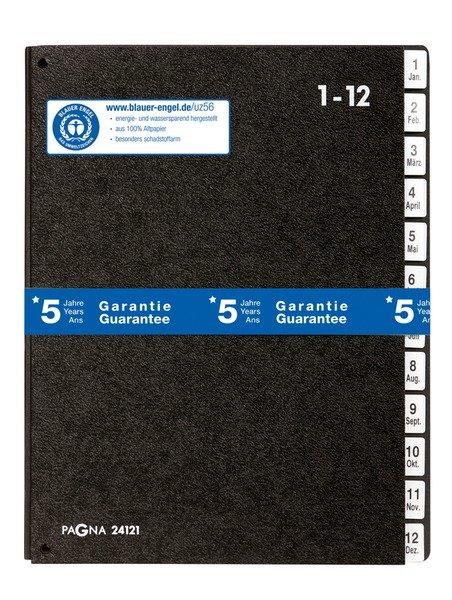 Pultordner Classic Pultordner, für Dokumente im Format A4, 12 Fächer, Classic, schwarz, aus stabiler Hartpappe (RC), mit dehnbarem und verstärktem Rücken für besonders hohes Füllvermögen, 3 Schaulöchern im Buchblock, reißfesten Seiten aus schwarzem Karton (RC), überstehenden Taben 1-12 / Jan-Dez (deutsch) aus langlebigem PP für extra schnelles Greifen, ausgezeichnet mit dem Umweltzeichen Blauer Engel, mit 5-Jahres-Garantie Pultordner Classic 12 Fächer 1-12/Jan-Dez schwarz 3 Schaulöcher im Buchblock mit Dehnrücken 12 Fächer Tabe 1-12, Jan-Dez Zertifikat Blauer Engel stabile Hartpappe (RC) 5-Jahre Garantie
