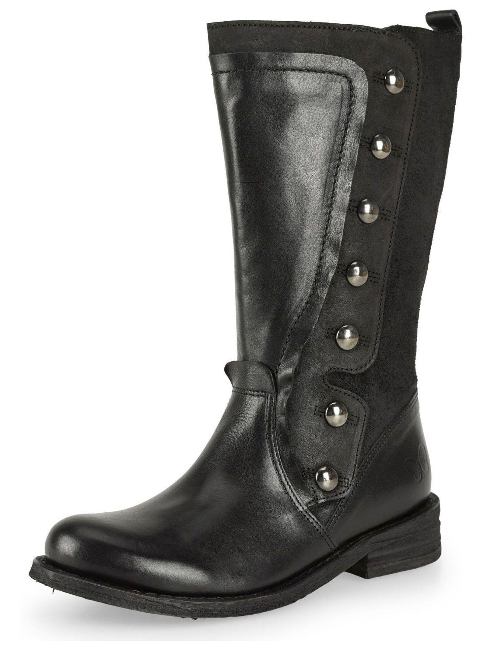 GREDO D896 Bikerstiefel aus einer Mischung aus Leder und Wildleder in Schwarz, mit Metallknöpfen und einem Innenreißverschluss versehen. Eine Verschmelzung von robuster Eleganz und praktischem Design, die die Essenz des Felmini-Geistes verkörpert. Obermaterial: Leder Innenmaterial: Textil Decksohle: Leder Laufsohle: Gummi