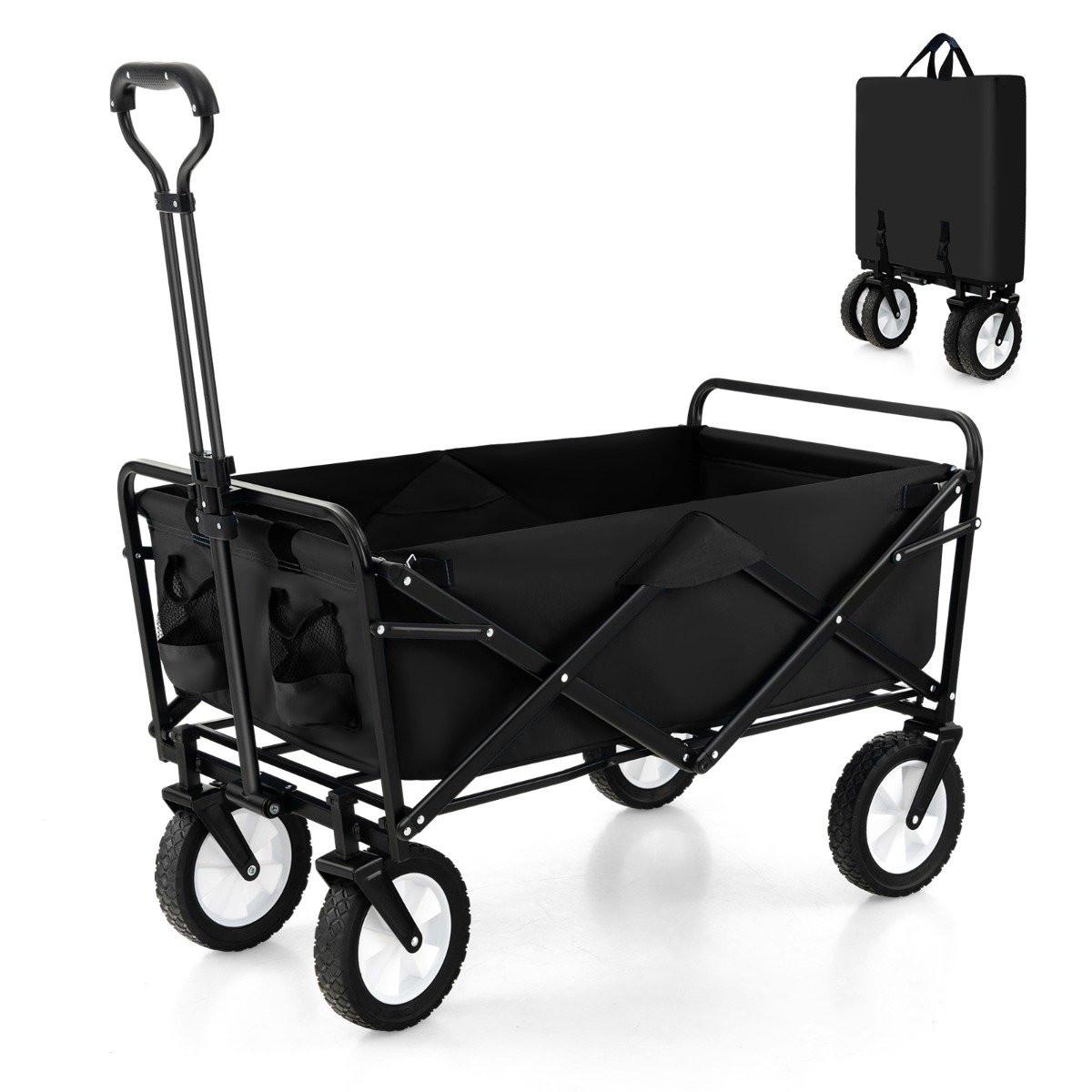 Northio Faltbarer Bollerwagen mit Verstellbarem Griff & Getränkehaltern bis 68 kg Belastbar für Einkaufen Camping Schwarz