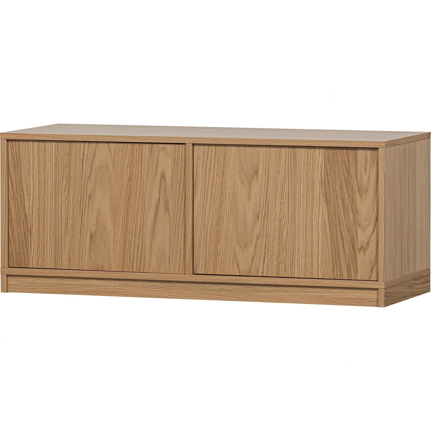 Von der imposanten Schrankwand bis zur schmalen Nische, vom stilvollen TV-Schrank über die gesamte Wandbreite bis zum verspielten Sideboard. Mit der Modular-Serie stehen Ihnen alle Möglichkeiten offen! Das matte Eichenfurnier sorgt für ein warmen, zeitlosen Look und fügt sich leicht in verschiedene Einrichtungsstile ein. Ob Sie nun ein Retro-, skandinavisches oder botanisches Interieur haben, Modulair ist Ihr neuer Blickfang!MaterialEiche zeichnet sich durch einen hellbraunen Farbton mit einem sanften gelben Schimmer und einer deutlich sichtbaren Maserung aus. Eichenfurnier besteht aus schmalen Streifen, die auf eine glatte Holzunterlage geklebt werden. Das Furnier ist mit einer Schutzschicht versehen, die die dauerhafte Qualität eines furnierten Möbelstücks gewährleistet.Abmessungen & DetailsHöhe: 44 cm, Breite: 110 cm, Tiefe: 40 cmRahmenstärke: 17 mm4x Stauraum HxBxT: 15x52x36 cmSchranktür mit Push-to-Open-SystemHöhe des Schrankbodens: 5 cmMax. Tragfähigkeit: 15 kg pro RegalPflegehinweiseBehandeltes Eichenfurnier ist mit einem leicht feuchten, sauberen Tuch einfach zu reinigen. Die anschliessende Trocknung sorgt für ein streifenfreies Ergebnis. Das verleimte Furnier kann sich verformen, wenn es Hitze und/oder Feuchtigkeit ausgesetzt wird.LieferungDieser Modulair-Artikel wird in zwei Paketen geliefert und ist mit Hilfe der beiliegenden Montageanleitung leicht zu montieren.