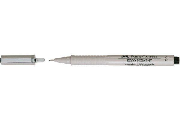 ECCO - Tintenschreiber Die beliebten und zuverlässigen Tintenzeichner ECCO PIGMENT von Faber-Castell eignen sich zum Schreiben, Zeichnen und Skizzieren. Durch ihre besondere pigmentierte Tinte sind sie auch bestens für die Verwendung auf Zeichenpapier und Transparentpapier geeignet. Die pigmentierte Tinte ist wasserfest und lichtbeständig. Durch die lange metallgefaßte Faserspitze können Zeichnungen an Schablonen und Linealen präzise durchgeführt werden. Radierbar auf Transparentpapier Schlägt nicht durchs Papier Ergonomische Griffzone Metallclip Lange, metallgefaßte Spitze Für Lineale und Schablonen geeignet