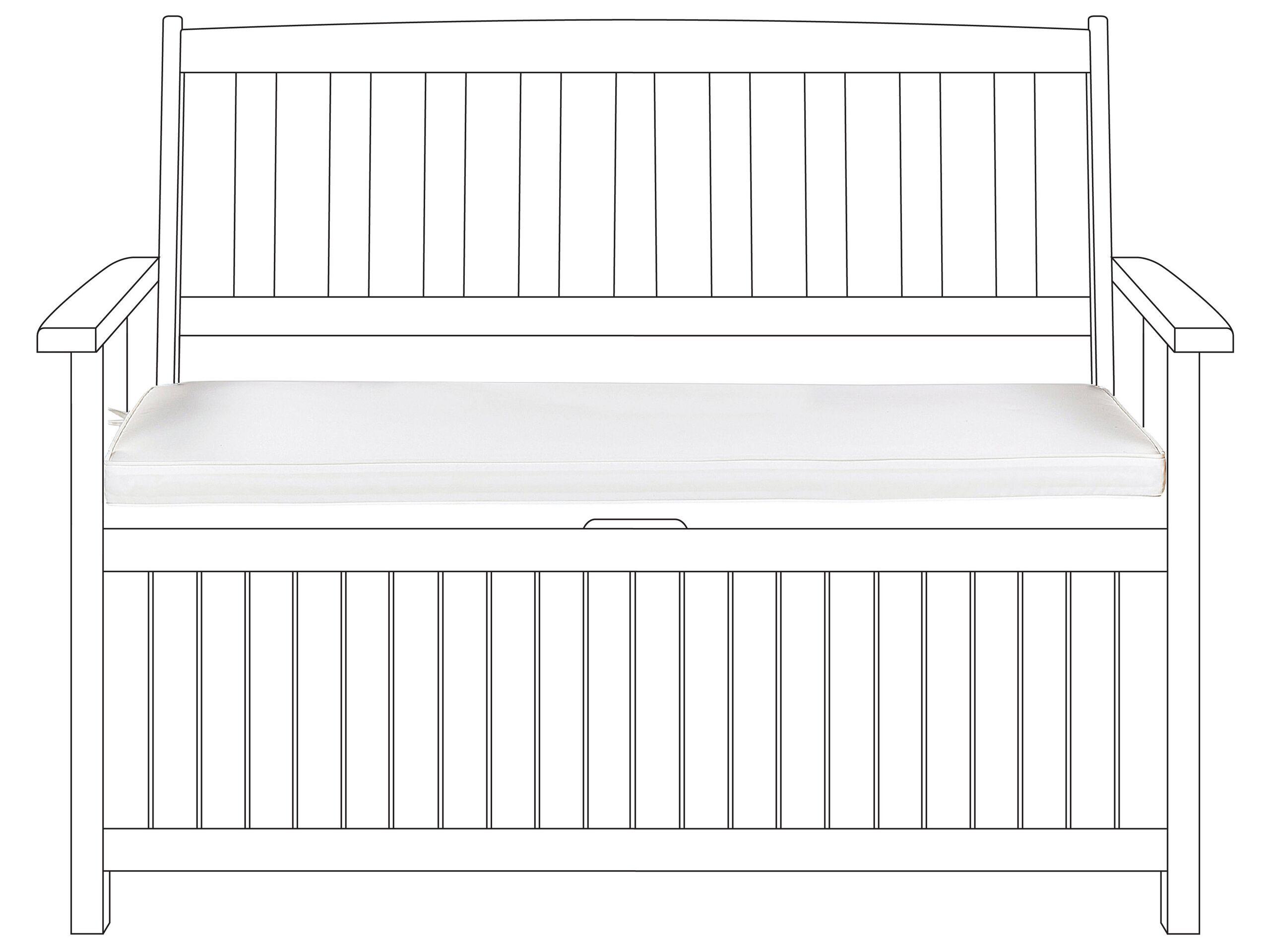 Moderne, cremeweisse Bankauflage mit Reissverschluss und Befestigungsbändern. Bestücken Sie Ihre Gartenbank mit einer passenden Polsterauflage, die den Sitzkomfort steigert und dabei noch fabelhaft in Ihrem Aussenbereich aussieht. Sie besteht aus einem strapazierfähigen Stoff und ist mit praktischen Befestigungsbändern ausgestattet; so kann die Auflage einfach auf der Sitzfläche platziert werden und wird auch bei jedem sommerlichen Windhauch nicht verrutschen. Das Sitzkissen verfügt zudem über einen waschbaren Bezug, der sich über den versteckten Reissverschluss leicht abnehmen lässt.