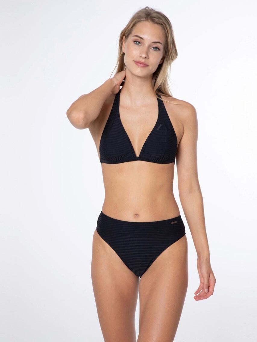 Wir präsentieren das MIXWANAKA Neckholder-Bikini-Oberteil von Protest. Der Neckholder ist ein sehr schmeichelndes Modell. Dieser Bikini ist aus einem strukturierten schwarzen Stoff hergestellt. Das MIXWANAKA ist Teil unserer Mix&Match-Serie und kann mit verschiedenen Bikini-Hosen aus unserer Serie kombiniert werden. Die Träger sind mit Perlen besetzt. Der Bikini wird im Nacken verknotet und am Rücken mit einer Schnalle verschlossen. Die herausnehmbaren Schaum-Cups betonen deine Kurven und bieten zusätzlichen Support. Die Cups trocknen sehr schnell und sind daher äusserst komfortabel. Der MIXWANAKA von Protest ist das perfekte Bikini-Oberteil für einen sonnigen Sommer.