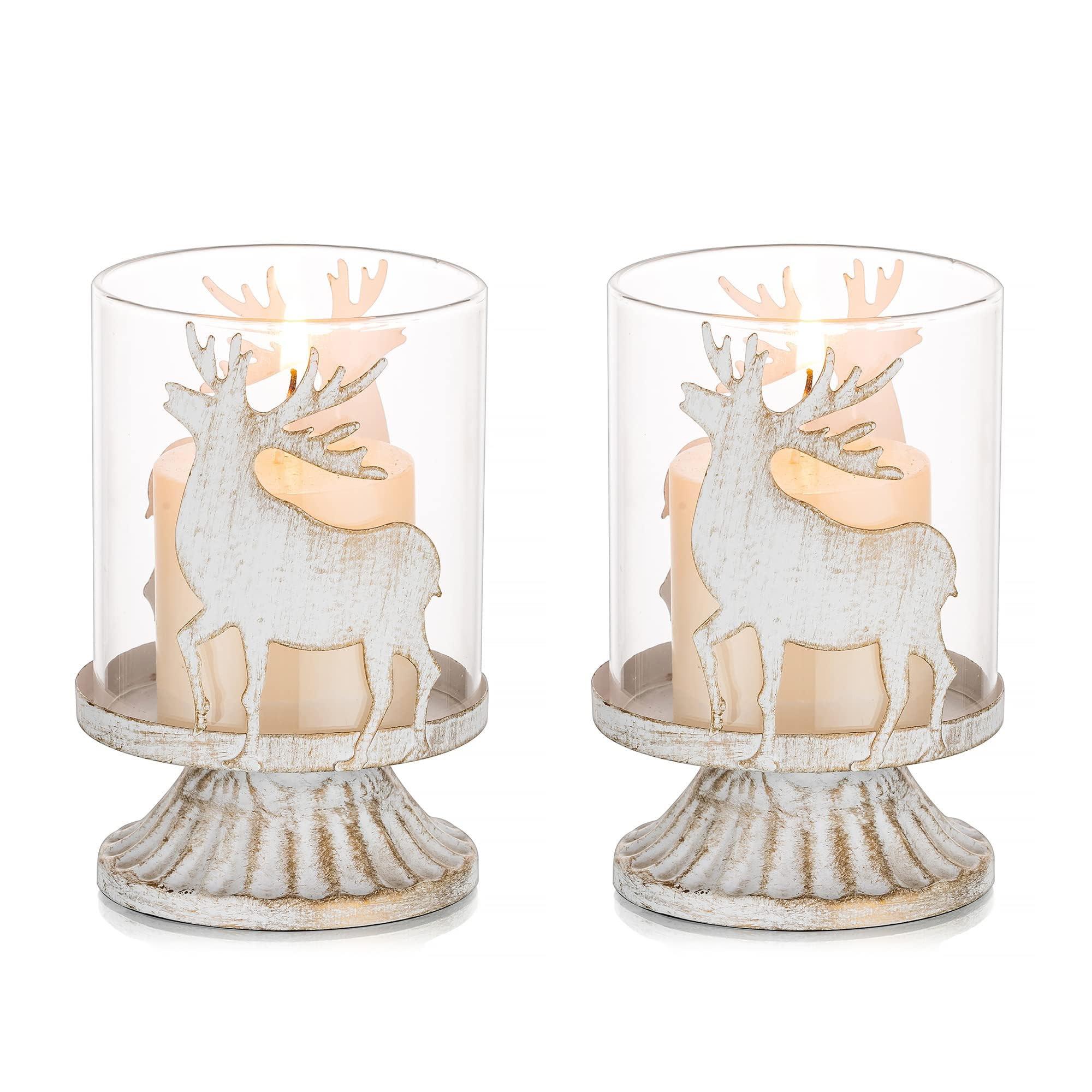 Alopini Kerzenständer Kerzenständer Vintage Dekoration: 2er-Set Hirsch-Rentier-Laternen Kerzenständer für Tischdekoration Landhausstil Tisch