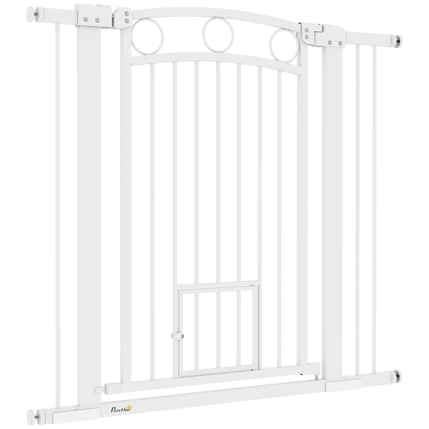 Northio, Türschutzgitter für Hunde, 76-104 cm Treppengitter ohne Bohren, schließbar Treppenschutzgitter mit Katzentür, Schutzgitter für alle großen Hunde, Stahl, Weiß
