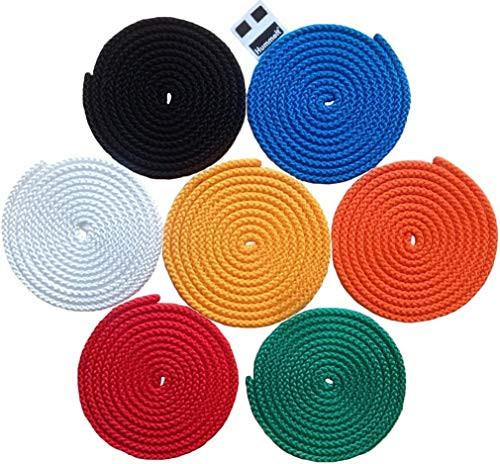 Im 5er, 6er oder 7er Set ist jedes Seil 2,5 Meter lang und 8 mm dick. Die Seile sind leicht und weich geflochten, dennoch sehr robust und liegen gut in der Hand. Seilfarben: schwarz, gelb, rot, blau, grün, aus hochwertigem Polypropylen, leicht (schwimmfähig), nimmt kein Wasser auf, hohe UV-Beständigkeit. Beispiele für Verwendungen: Gymnastikübungen, Kinderspiele, Sportübungen, Basteln, Spielzeug, Haustierspielzeug, Spielseil, Kinderseil, Tauziehen, Stricken, Wassersport, Garten, Haus, Garage, Modellbau, Armbänder, Hundeleinen, Ladenauslagen, Baumpflege, Freizeit, Aktivitäten im Freien.