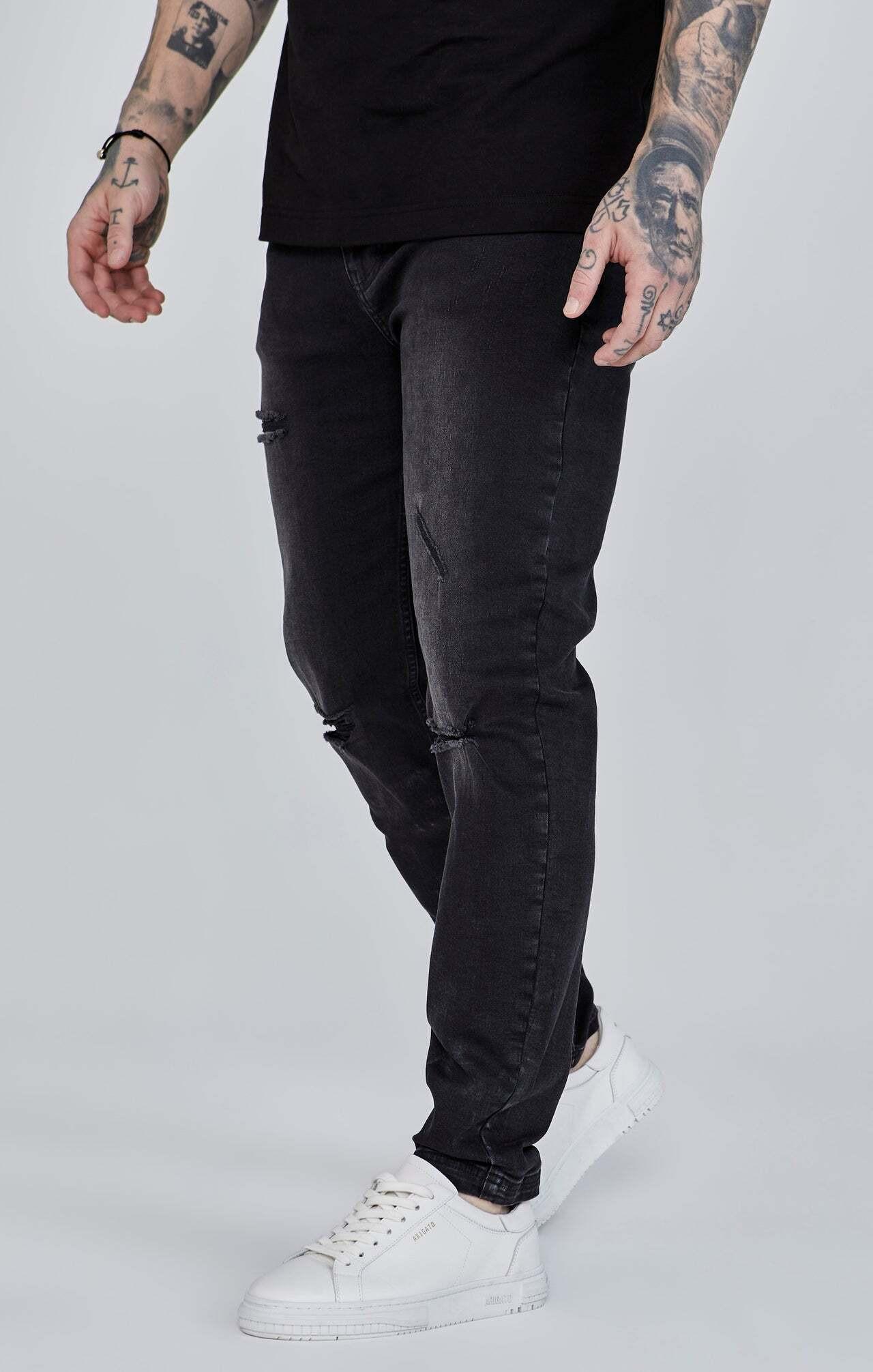 Die Distressed Slim Fit Jeans in Schwarz sind ein Statement-Stück für jede Garderobe. Das ausgewaschene Schwarz sowie das Distressed-Detailing verleihen ihnen einen modernen Used-Look. Dank des Stretchmaterials bieten sie eine bequeme Passform und optimale Bewegungsfreiheit, während das klassische 5-Pocket-Design praktischen Stauraum bietet.