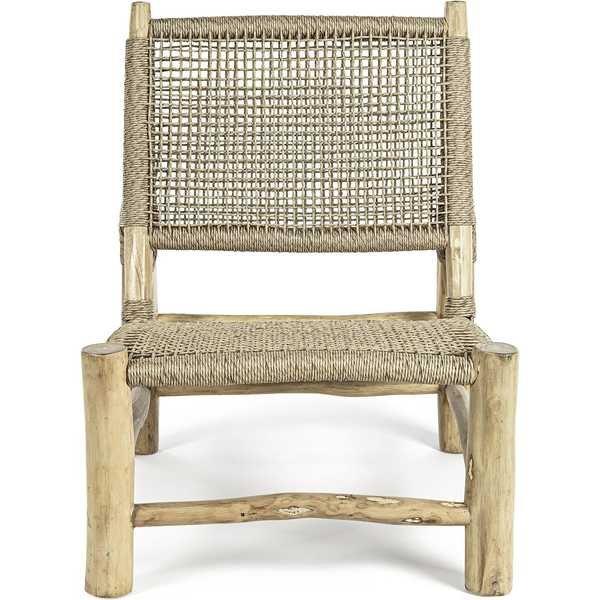 Garten Sessel Lampok. Gestell aus Teakholzästen, Sitzfläche und Rückenlehne aus Kunstfasergeflecht (Viro). Verstellbare Rückenlehne (4 Positionen). Es wird empfohlen, den Artikel nicht direktem Sonnenlicht und schlechter Witterung auszusetzen. Hinweis: Abbildungen nur indikativ. Jeder Artikel ist durch die natürlich gewachsene Farbe und Form des Holzes einzigartig. Risse und kleine Sprünge in der Struktur sind als natürliche Merkmale des Produkts zu betrachten.