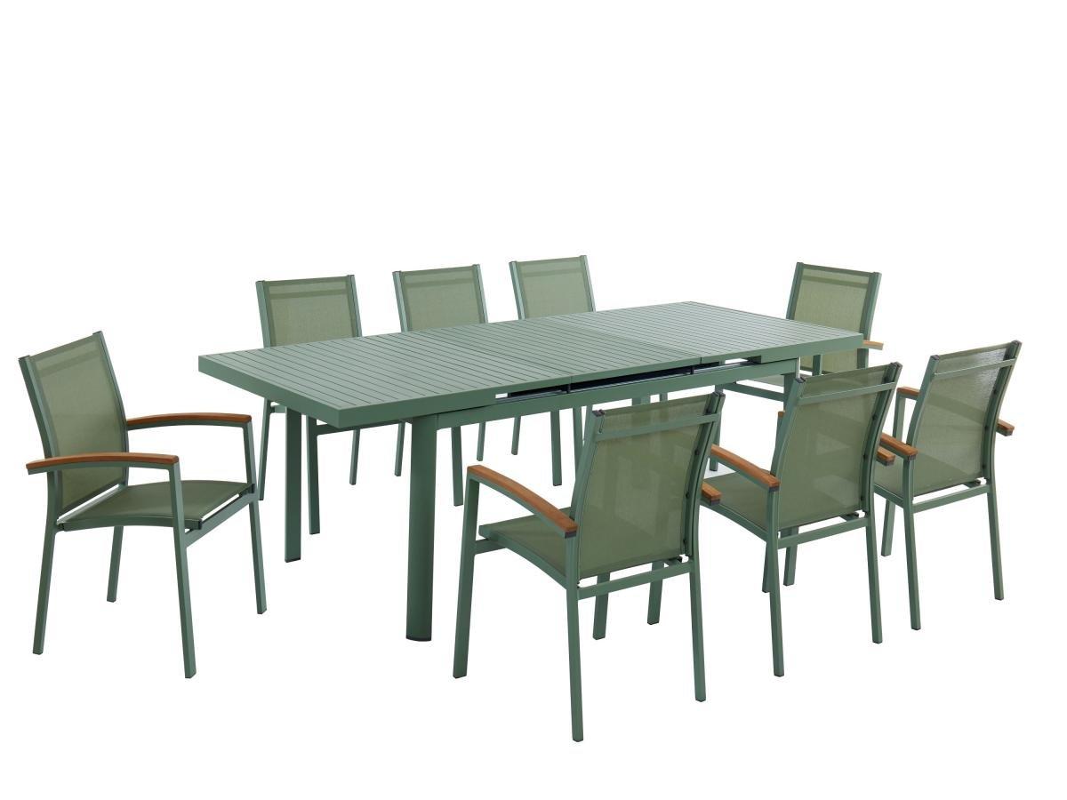 Vente-unique Garten-Essgruppe: Tisch ausziehbar 180/240 cm + 8 stapelbare Sessel - Aluminium - Grün - NAURU von MYLIA