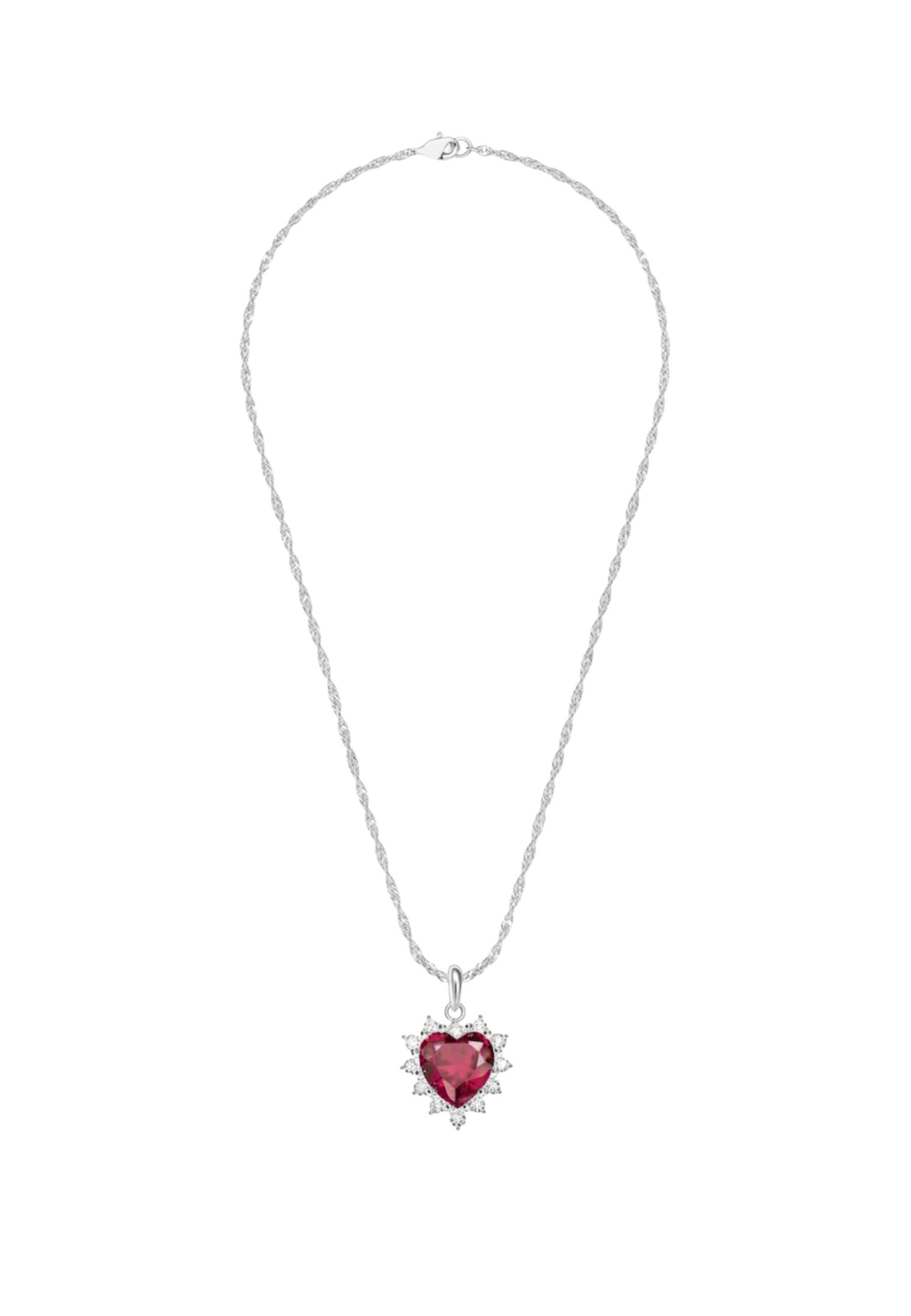Das Symbol der Liebe bildet das Herzstück dieser besonderen Halskette. Sie ist mit einem Herzanhänger verziert, der dank seines leuchtend roten Rubins funkelt und strahlt. Der herzförmig geschliffene Stein ist von feinen weißen Zirkoniasteinen umgeben. Auch die Singapurkette ist ebenso aufwendig gestaltet. Sie ist zart, funkelnd und besteht aus recyceltem 925er Sterlingsilber mit einer verstellbaren Länge von 40, 42,5 und 45 cm. Die Romance-Kette mit ihrem Anhänger ist das perfekte Geschenk für deinen Lieblingsmenschen – einzeln getragen oder kombiniert mit weiteren Schmuckstücken im selben Design.