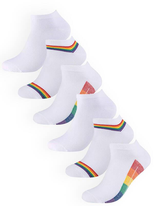 Diese Sneakersocken werden im praktischen 6er-Pack geliefert und verfügen über ein lebhaftes Regenbogen-Design, das jedem Outfit eine verspielte Note verleiht. Der knöcheltiefe Schnitt ist ideal zum Tragen mit Sneakers und anderen Freizeitschuhen und bietet Komfort sowie einen dezenten Farbtupfer.